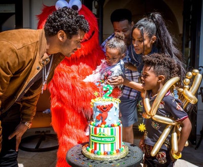 Mom and dad threw an intimate bash for their baby girl with a Sesame Street twist. Mom and Dad hired a life-size Elmo to come party with the birthday girl. Surrounded by her parents and big brother Future, Sienna blew out the big “2” on her adorable double-decker “Sienna Street” cake.