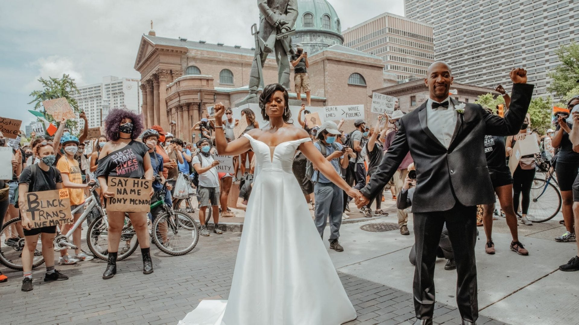 Across the globe, citizens everywhere have flooded the streets to protest police brutality amid the killings of George Floyd, Breonna Taylor and countless other victims. One couple made the bold decision to use this historic time as the backdrop of their wedding, and their powerful wedding photos instantly went viral.