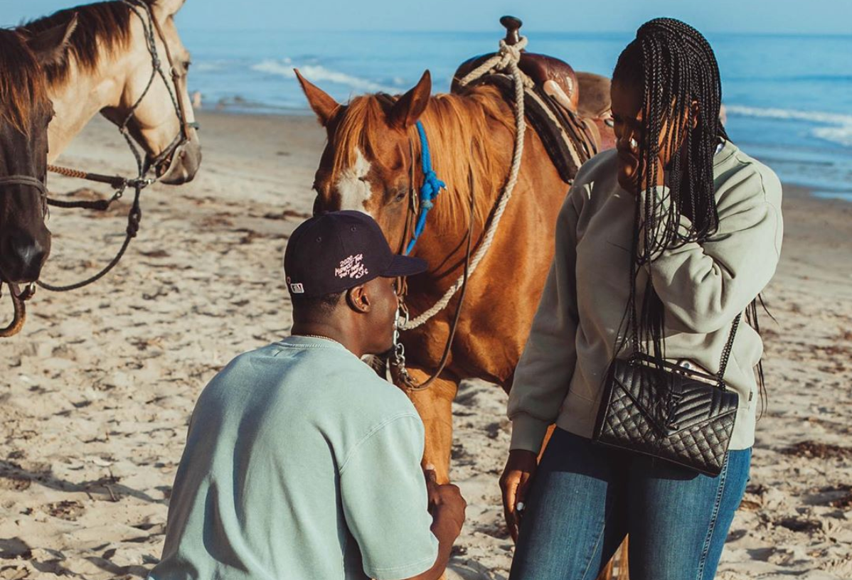 The Dear White People actress got engaged to her longtime boyfriend Darrell Jenkins over the weekend. The romantic proposal took place in Santa Barbara, California as the couple rode horses on the beach. “My Love. My Legacy. My Light. My Life,” Blaine Featherson captioned a photo of her sparkling round cut engagement ring. “Forever & A Day Isn’t Long Enough.” Congratulations via Instagram poured in from celebrities like Issa Rae, Kelly Rowland, Lena Waithe, and the bride-to-be’s fellow Dear White People star Logan Browning.