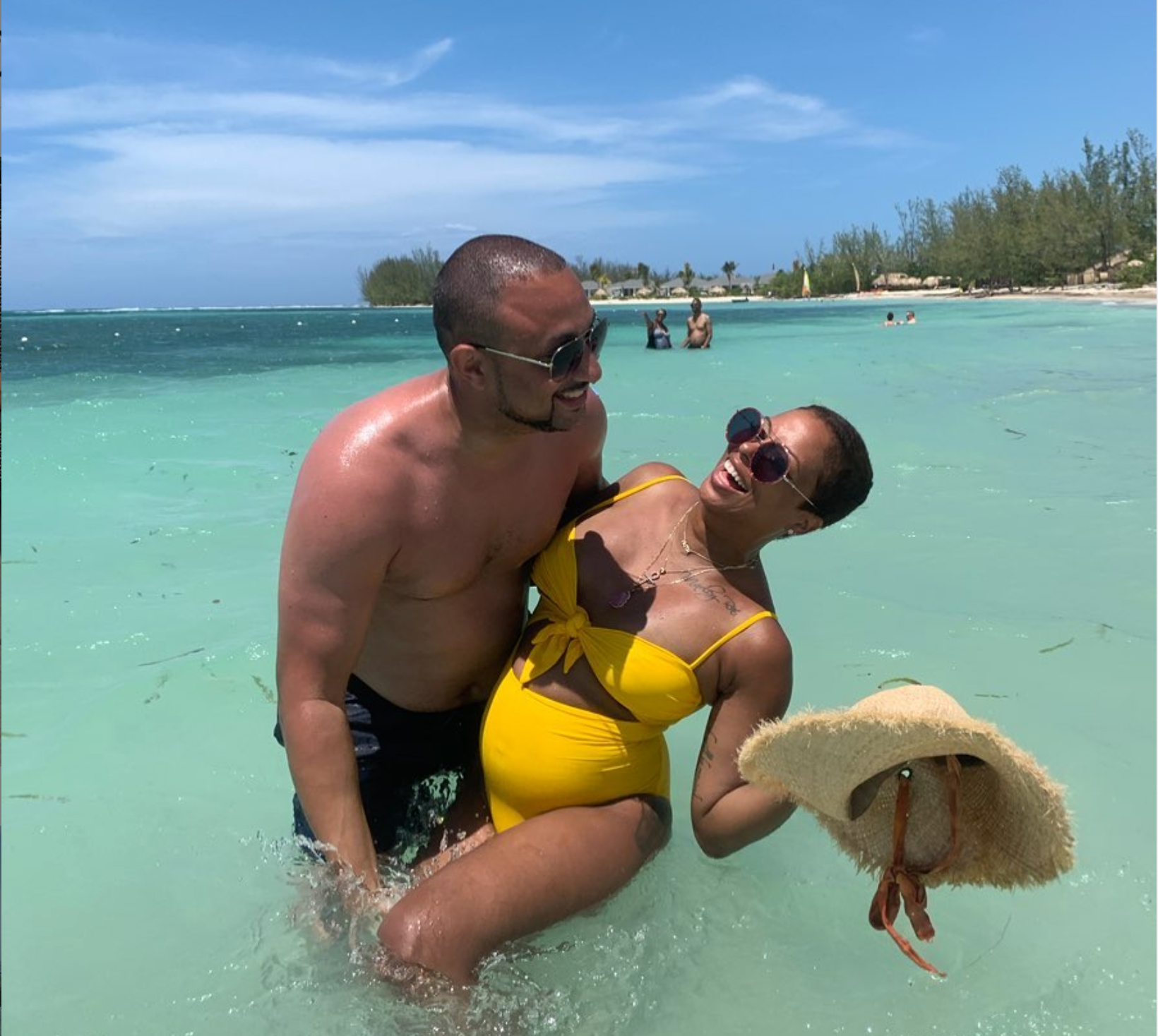 From the moment they boarded the flight, the Sterlings looked so in love and ready to jet off for a few days of rest and relaxation. Once on the island, there was no shortage of picture-perfect moments. Eva looked gorgeous while taking a dip in a white once piece swimsuit with fun designs. We can always count on Eva the Diva to turn looks no matter the occasion.