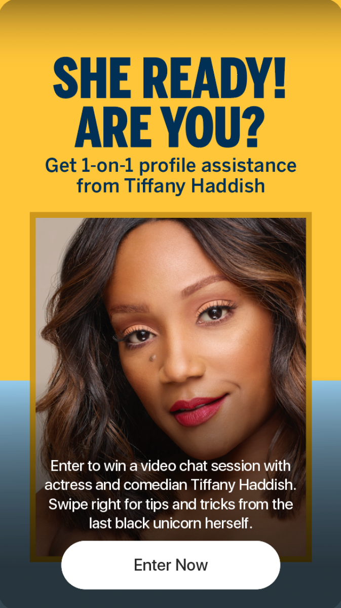 Comedic actress and TV host Tiffany Haddish has teamed up with the popular dating app Bumble to give single ladies and gentlemen tips to beef up their dating success. Bumble users in “date” mode can match with Tiffany’s in-app card to see her top dating tips and advice. Additionally, users who connect with Haddish’s card will get the chance to have a one-on-one profile makeover from the Girl’s Trip star via Bumble’s video chat feature. (In case you weren’t aware, your dating profile matters more than you might think.)