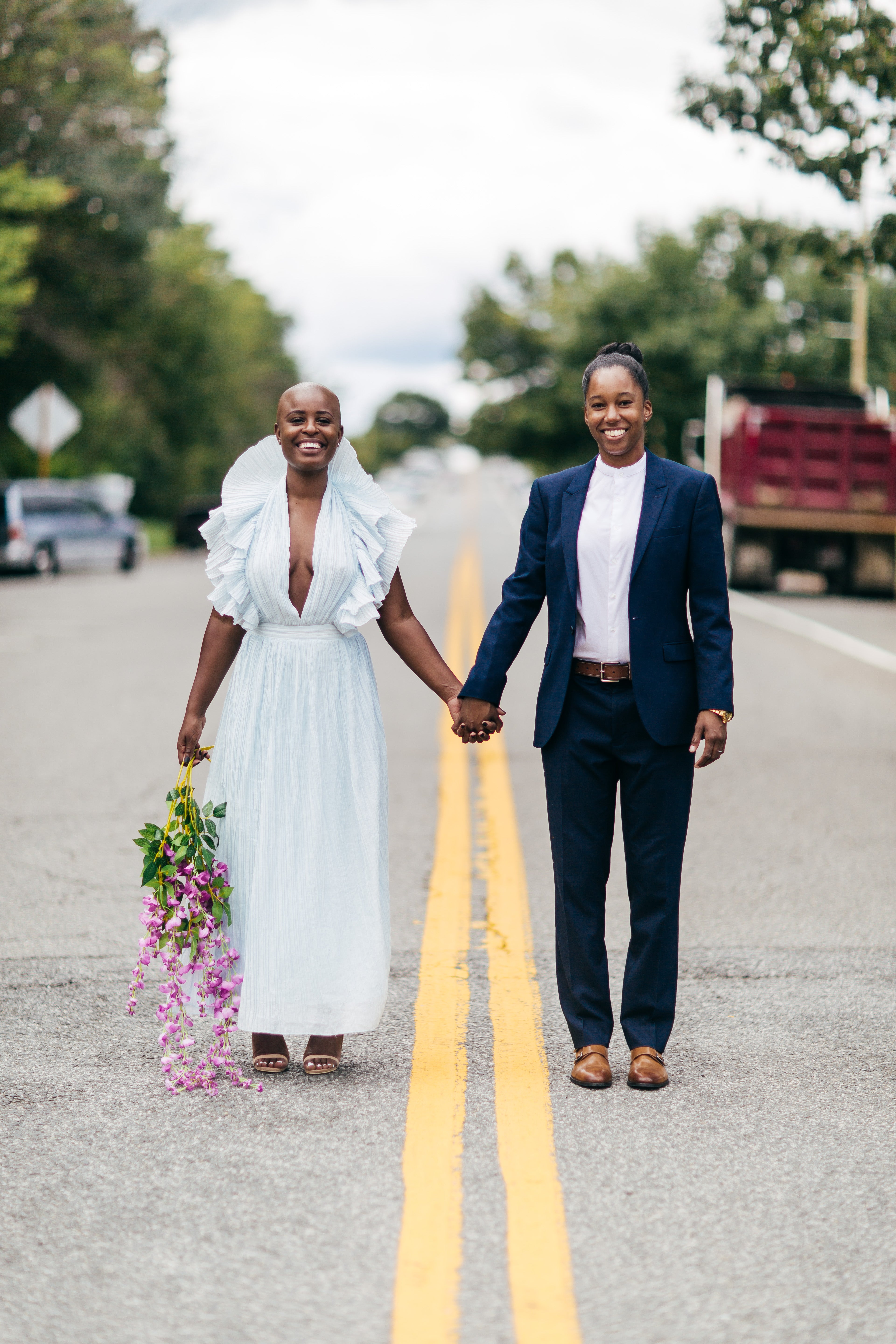 Their Story: They met on the job. Brandii was bartending and Courtney was training to be a server. At the 2015 Christmas party, we broke all of the cliché dating rules: “Don’t date your coworker! Don’t drink too much at the Christmas party, especially when there’s open bar and karaoke, and don’t fall head over heels too soon. Fast forward to a 2017 trip to Vegas, and they are now happily married with a lovable dog named Bruh.