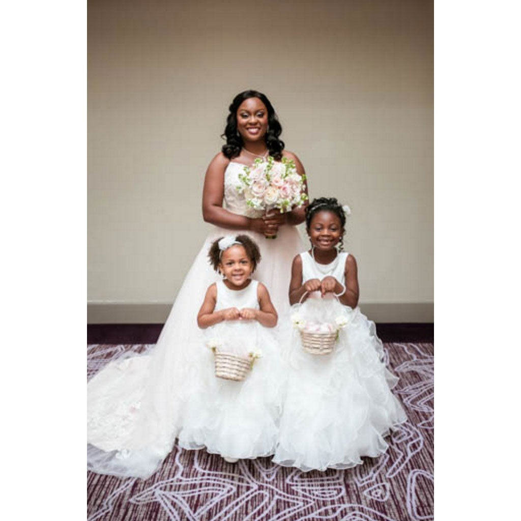 On her wedding day to husband Hervé, Tammi had some of her favorite girls by her side! “I’m a middle child and my older sister was the maid of honor, younger sister was a bridesmaid, Joseph’s sister (my new sister!) was a bridesmaid, and my best friend from childhood was also a bridesmaid.”
