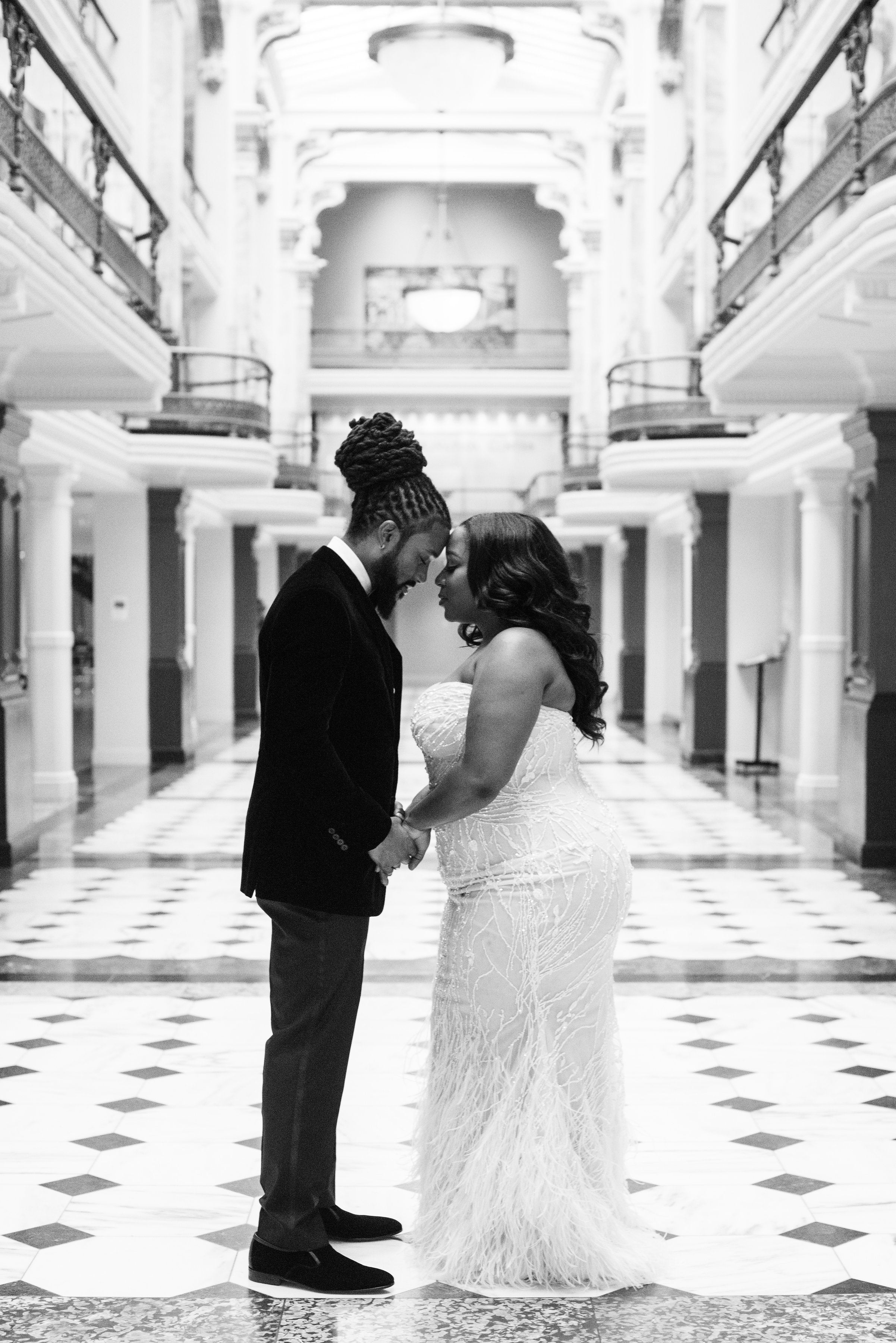 “I knew he was the one when came to visit me for New Year’s Eve while we were still in college,” the bride recalled. “His parents lived in Baltimore and mine in Northern Virginia. I asked my mother if Brent could spend the night after we came back from this New Years party and she was apprehensive because my dad was so “old school. He has a really old way of thinking when it comes to courting, like late 1800s old. Anyway, I remember telling Brent that it was pointless for him to come out with me because my dad was tripping and he would have to drive back to Baltimore so late. Brent came anyway and dropped me off after the party and tried to sleep in his car in the parking lot of our complex. It was so damn cold outside. I told my mother how cold it was and she felt sorry for him. She let me sneak him in the basement and he slept on the floor with a thin blanket and a pillow. He had to wake up at the crack of dawn to get out before my crazy-ass dad woke up. I was so embarrassed and thought for sure Brent would never come back because of how extra that whole situation was. Later that day, he called me to see when I was coming back to Howard so he could come back the same day and time. That’s when I knew.”