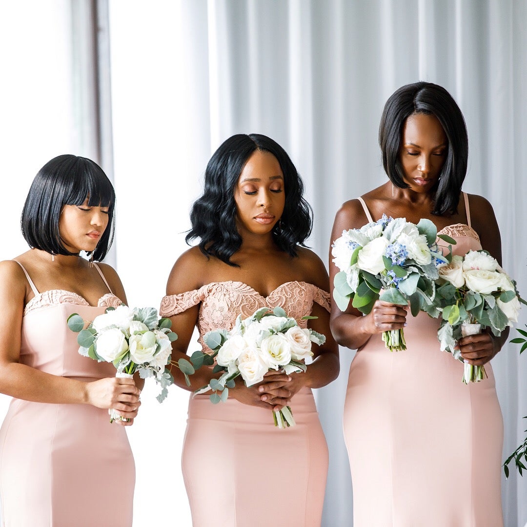 Janell’s bridesmaids were simply gorgeous on her big day. The bride opted for a variety of dress styles for them and chose a gorgeous color that complimented their skin tones perfectly!