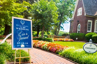 As a favor, Erin and Jamaal gave their family and friends cute wooden fans to help them beat the heat during their summer garden wedding in Maryland.