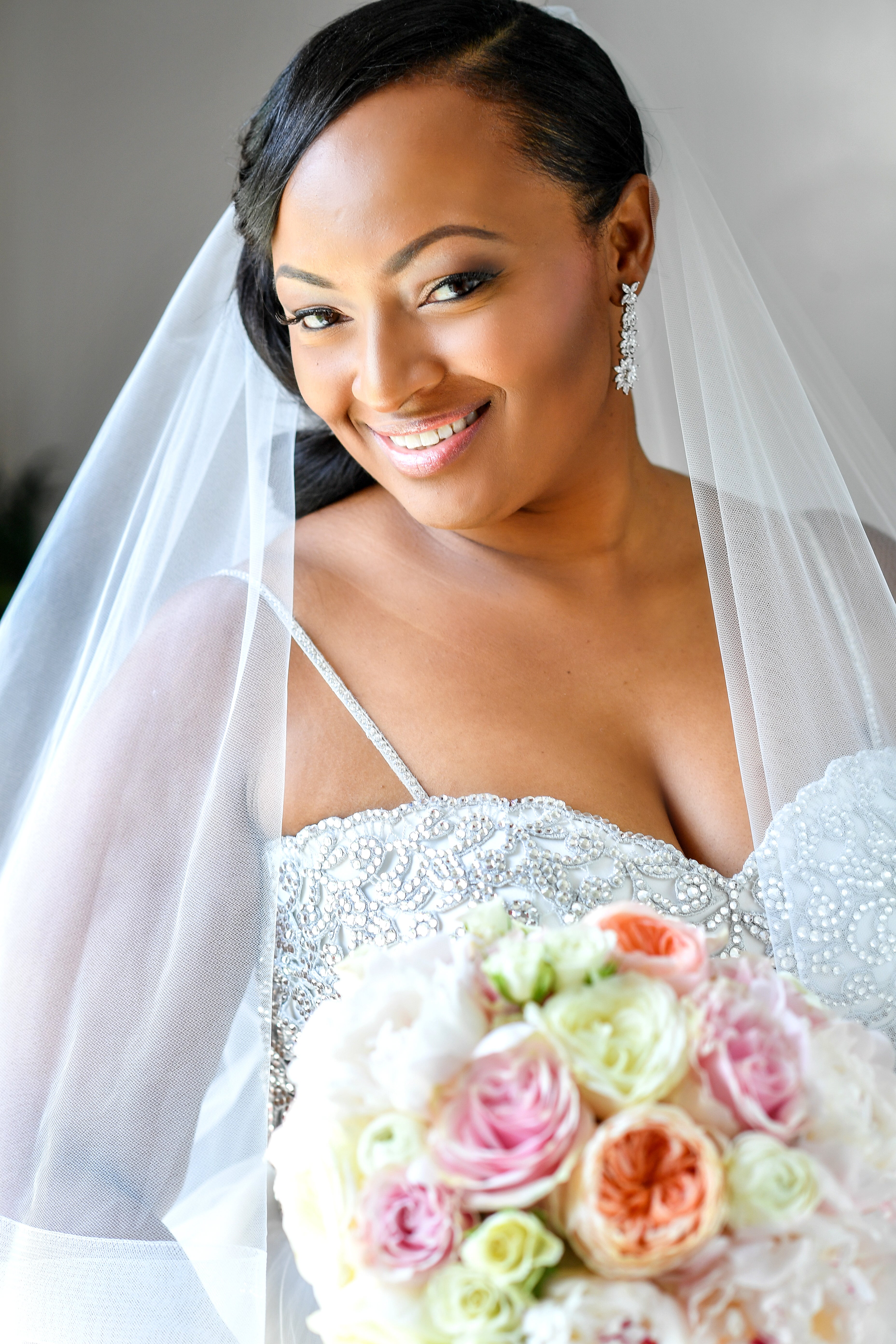 “I felt really special knowing I was about to be married,” the groom recalled. “The feelings of being overjoyed and overwhelmed consumed me. I put a lot of thought into preparing for this special day in my life. I had no doubt in my mind that I was prepared for this experience. My dream of someday becoming a groom had come true. My family and friends made this day special. I was blown away by the unbelievable work of our wedding planner and florist when I saw the floral arrangements at our venue. She exceeded my expectations, and everything I dreamed of in a dream wedding came to fruition. Also, I felt like my suit was tailored to perfection, and my groomsmen all looked so sharp. With my brothers and sisters surrounding us in our bridal party with so much love, I could not ask for more.”