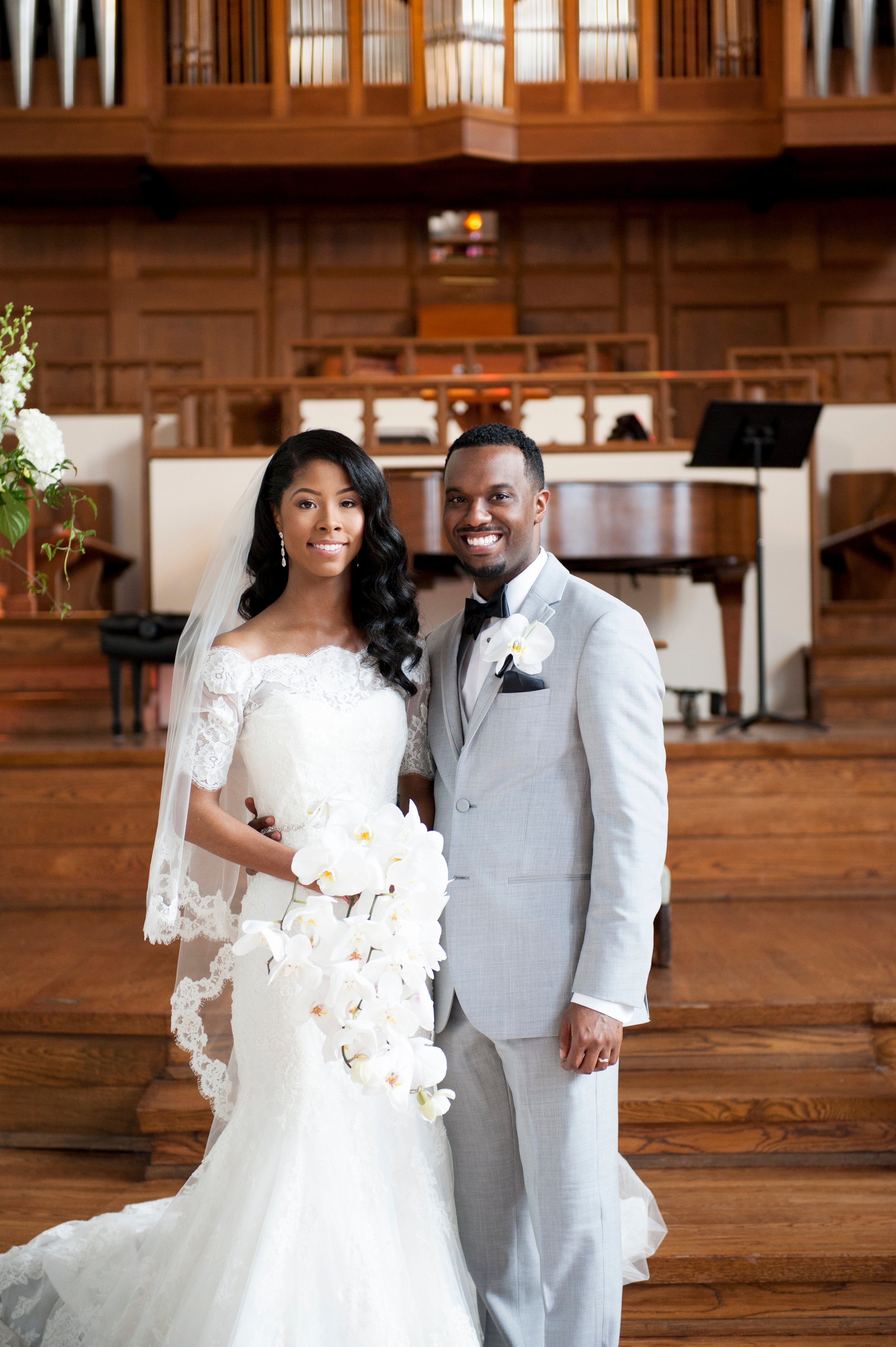 “I always wanted a cascading bouquet on my wedding day with a mix of my favorite flowers,” the bride said. “Looking back on the photos of the wedding day it just completed my Old Hollywood attire.”