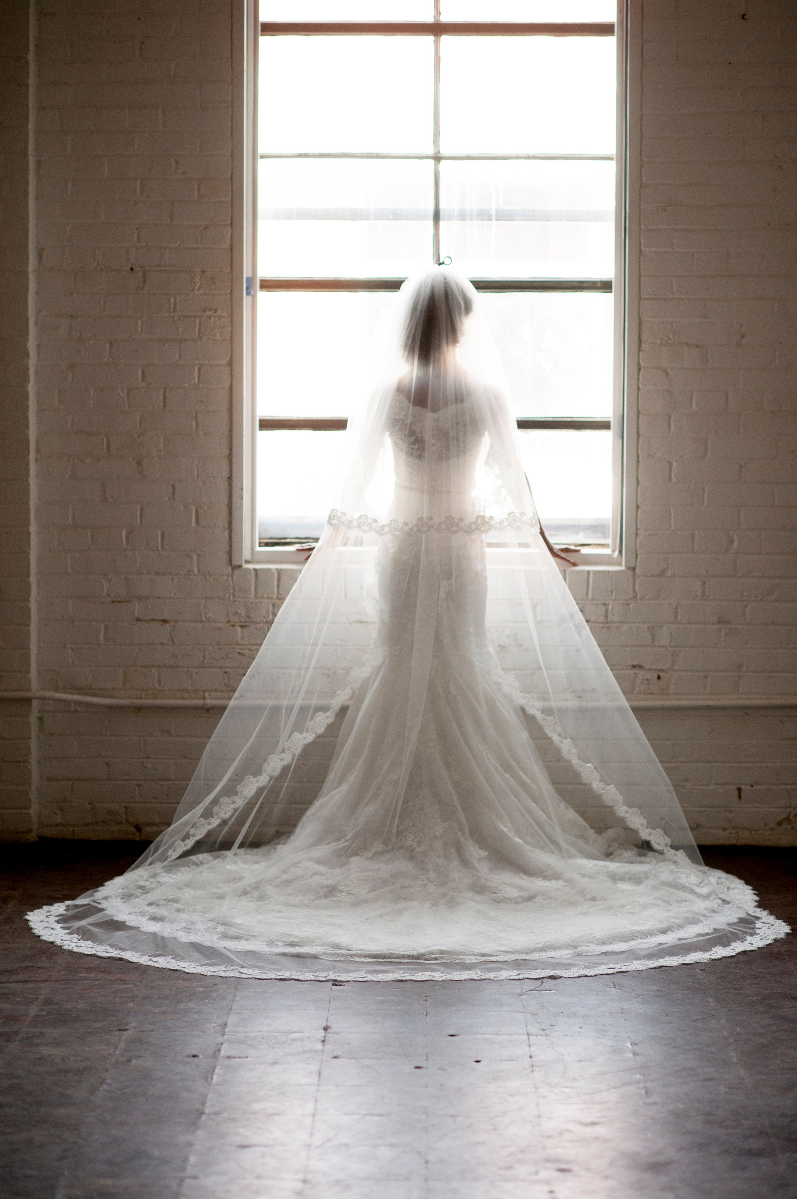 During the alteration process when purchasing her wedding gown, the bride had the seamtress cut some of the extra lace from the dress to make a custom off-the-shoulder jacket that took her look to a whole new level!