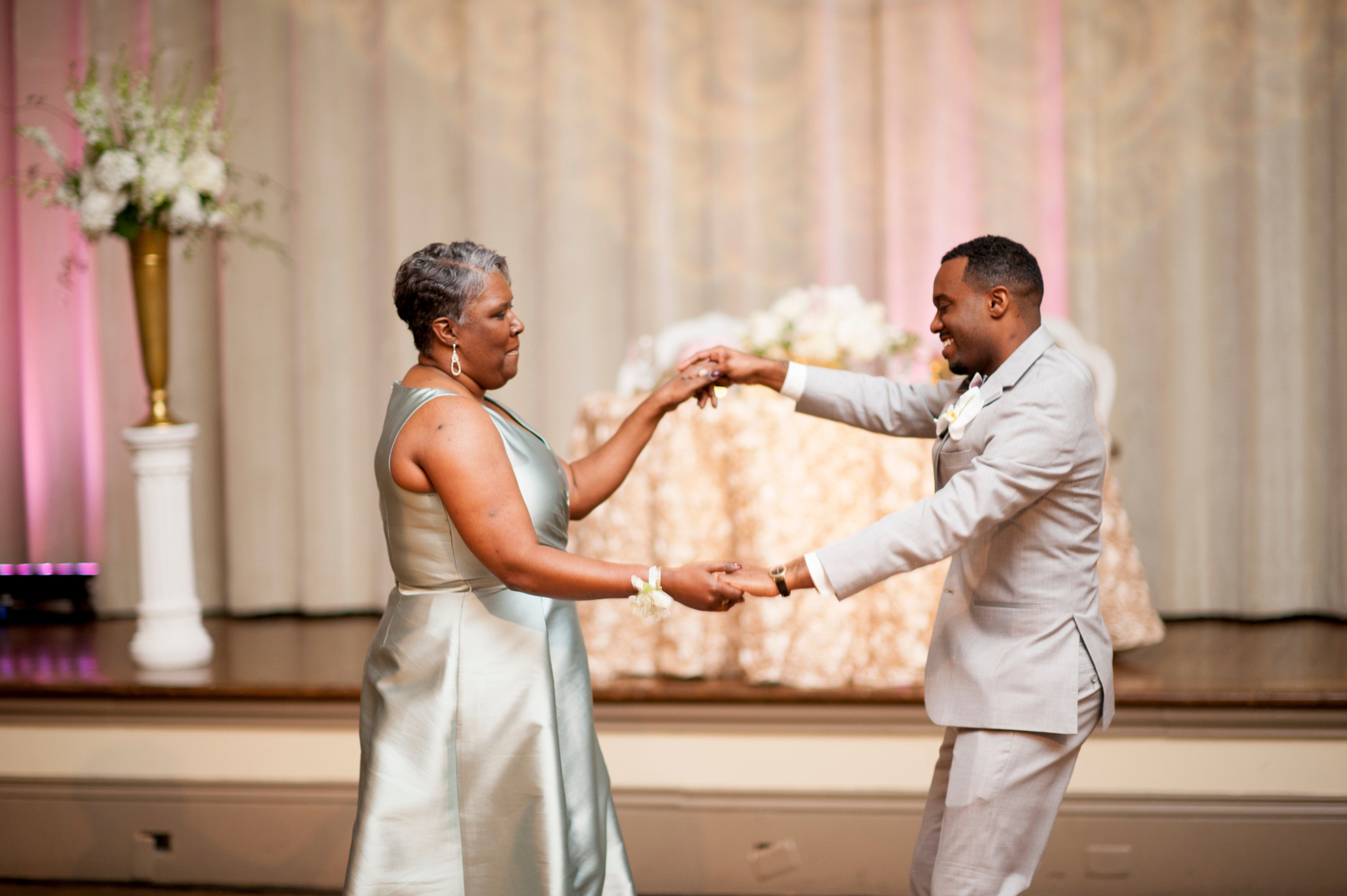 The groom and his mother shared some fun on the dance floor during he and the bride’s reception!