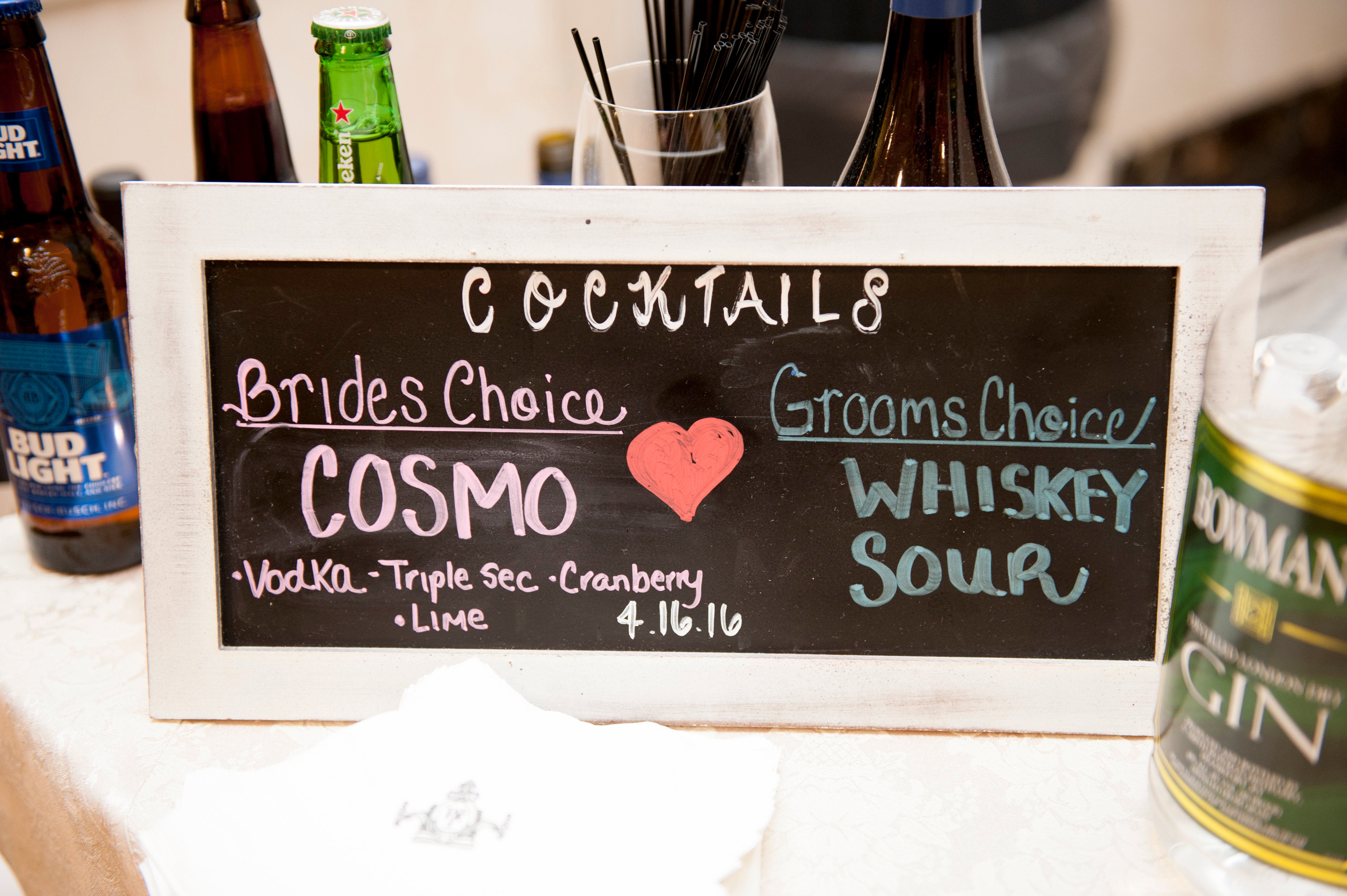 Harrison and Shamara’s wedding wouldn’t be complete with a signature cocktail for each the bride and the groom. What great choices!