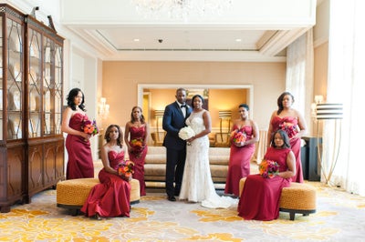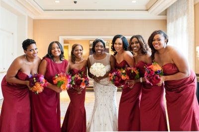 We love that the brided selected such a rich color for her bridesmaids to wear on her big day. These ladies definitely look flawless!