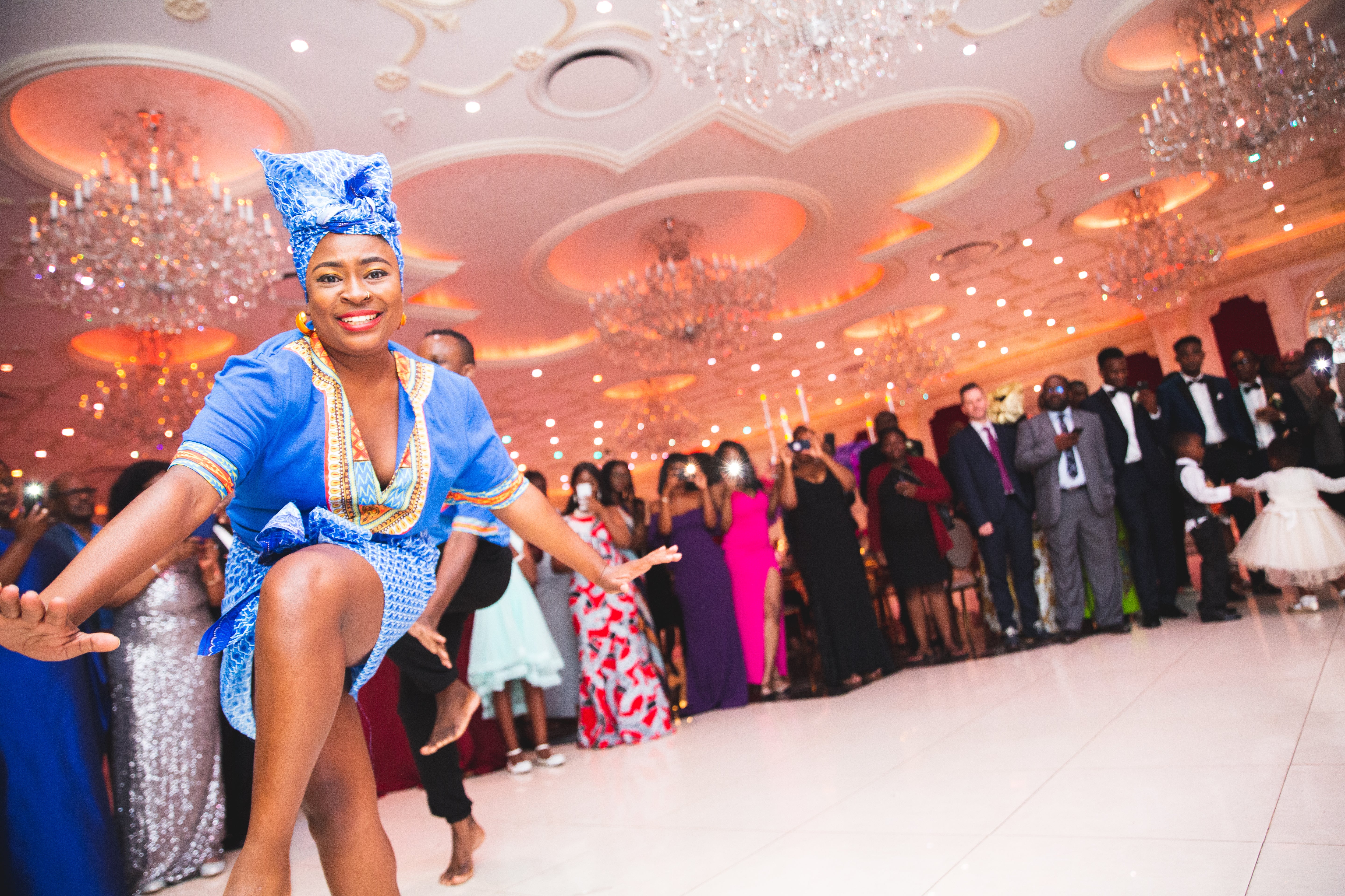It’s always darkest before the dawn, though. Thanks to the help of their wedding planner, Victoria Lartey-Williams of Victorious Events NYC, their ceremony fell beautifully into place. The couple’s dream wedding incorporated nods to their respective African and Haitian traditions. The five-hour reception was so lit, guests didn’t want to leave. Best of all, the couple found an artistic way to honor those they’ve lost.