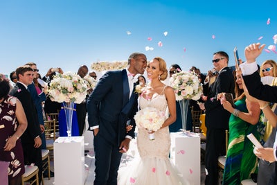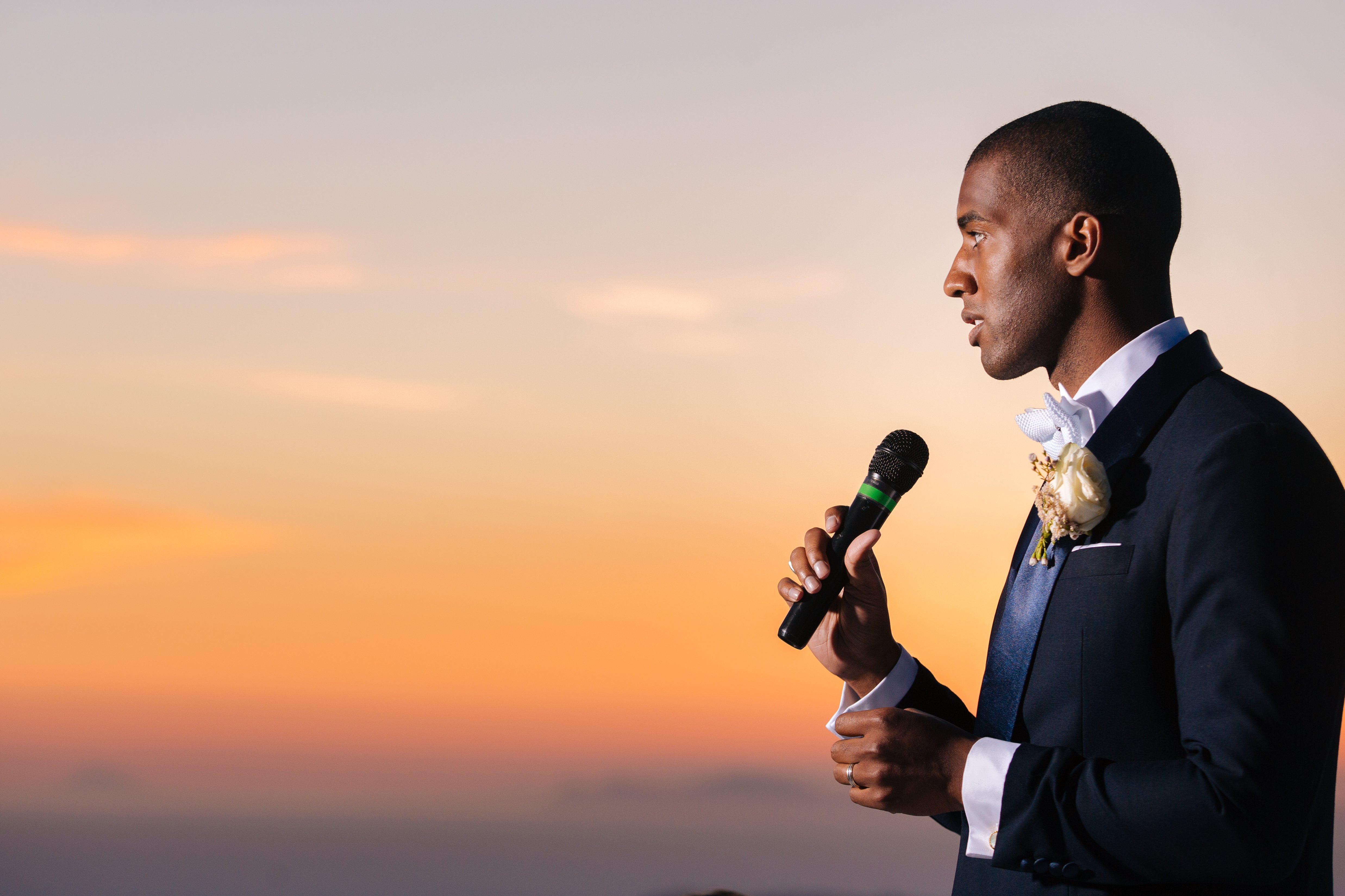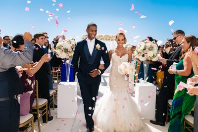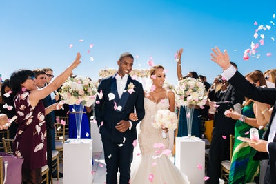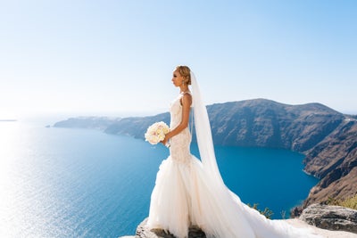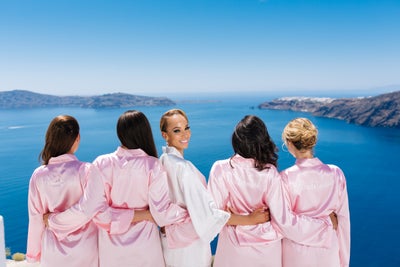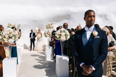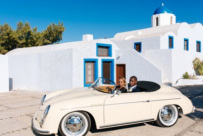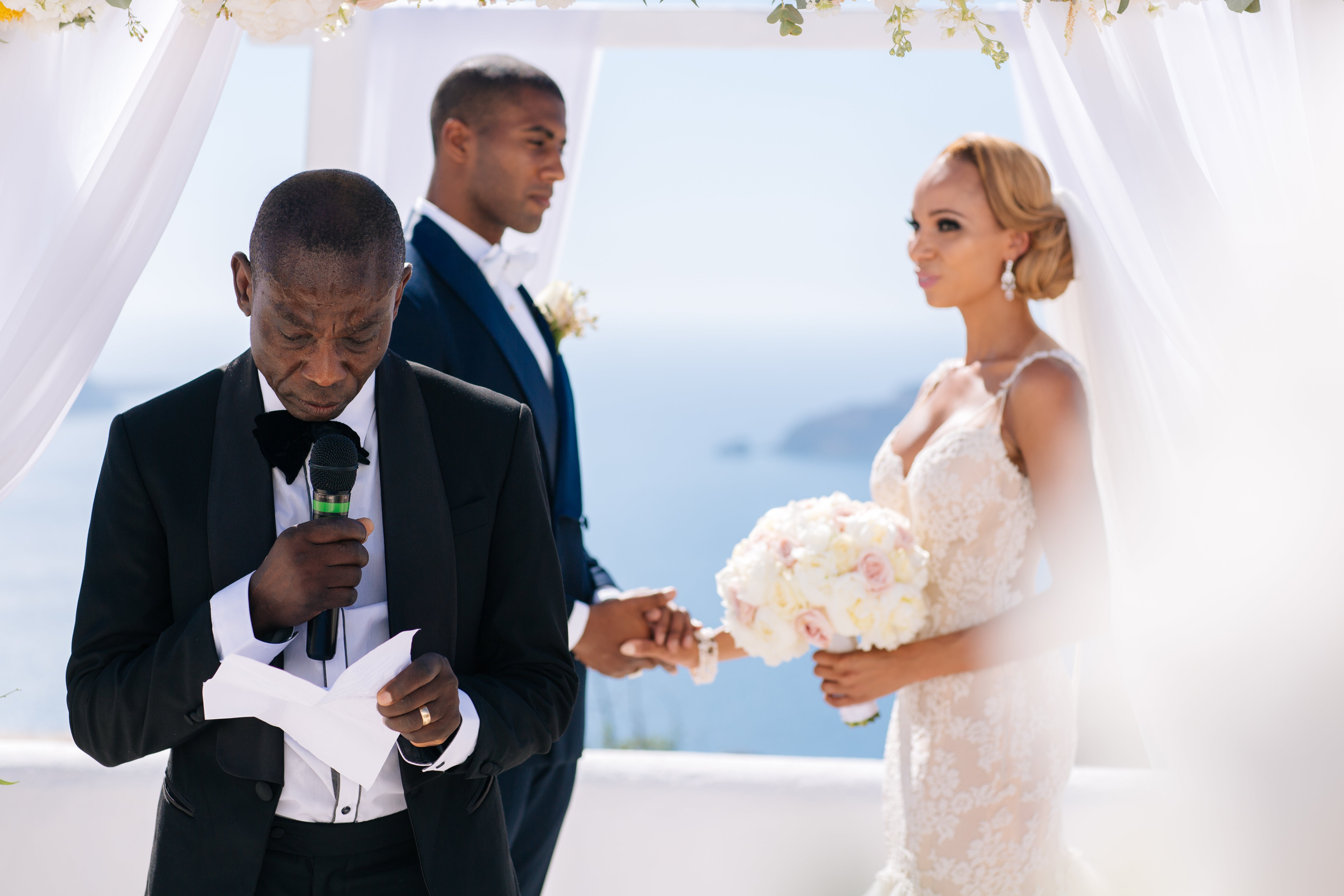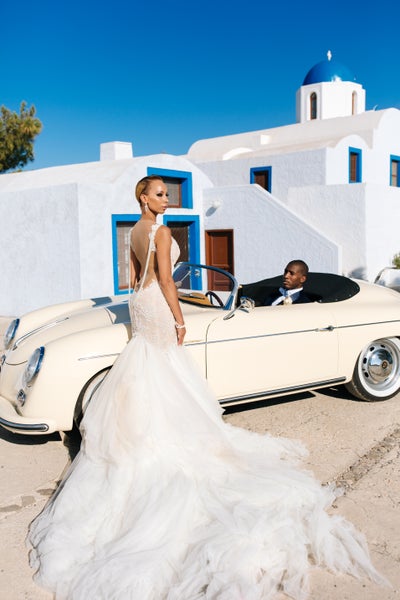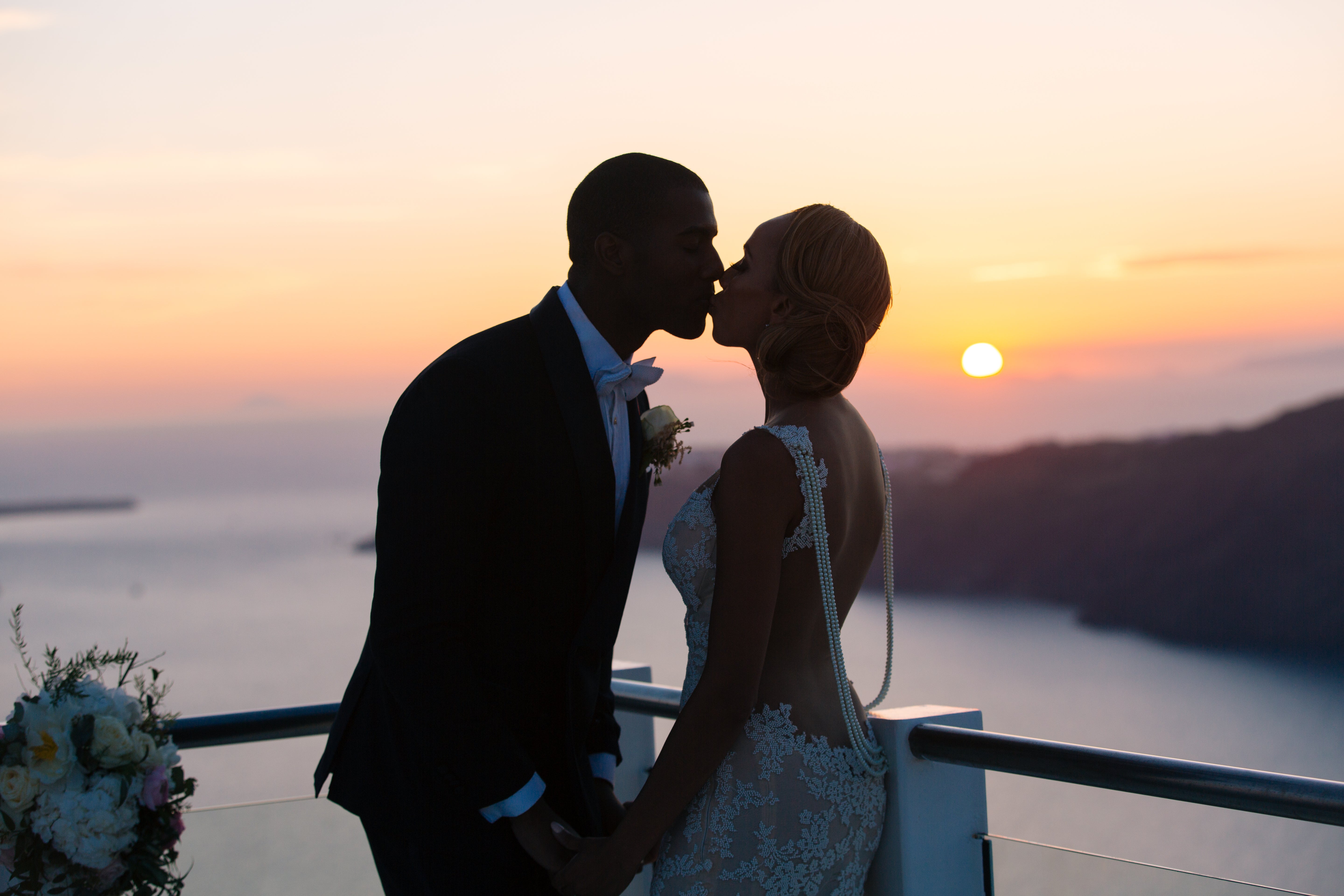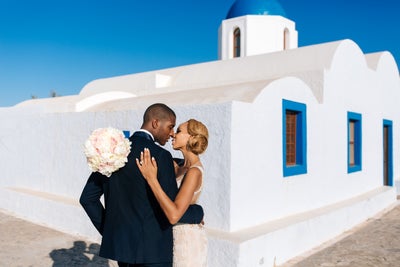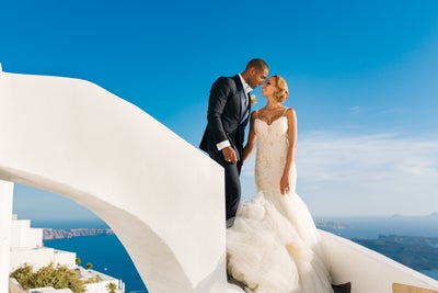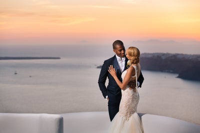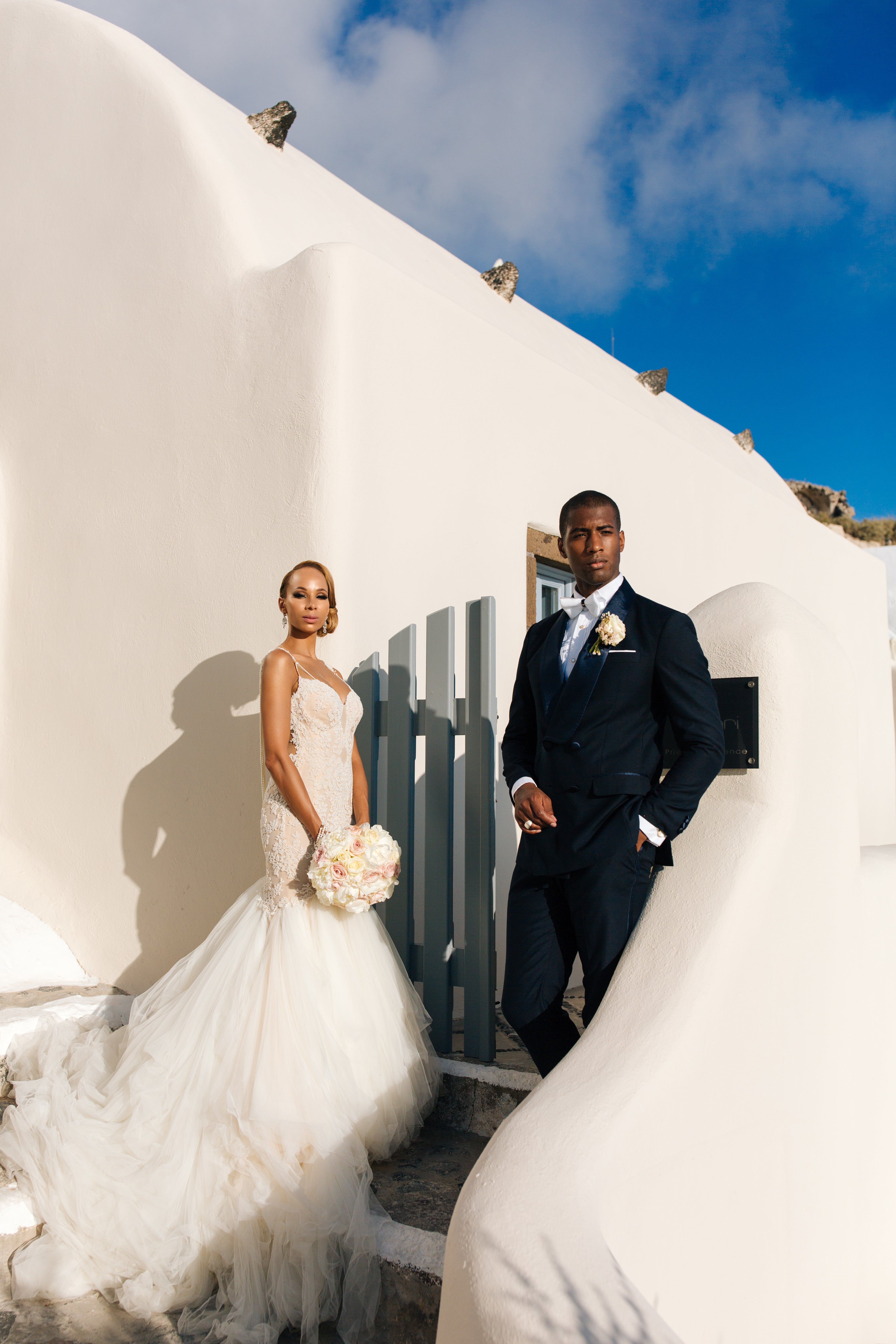 Jordan and Essie knew they wanted to honor her European roots when they tied the knot. They chose Santorini because it was “the most stunning outdoor venue [they] could find.”
