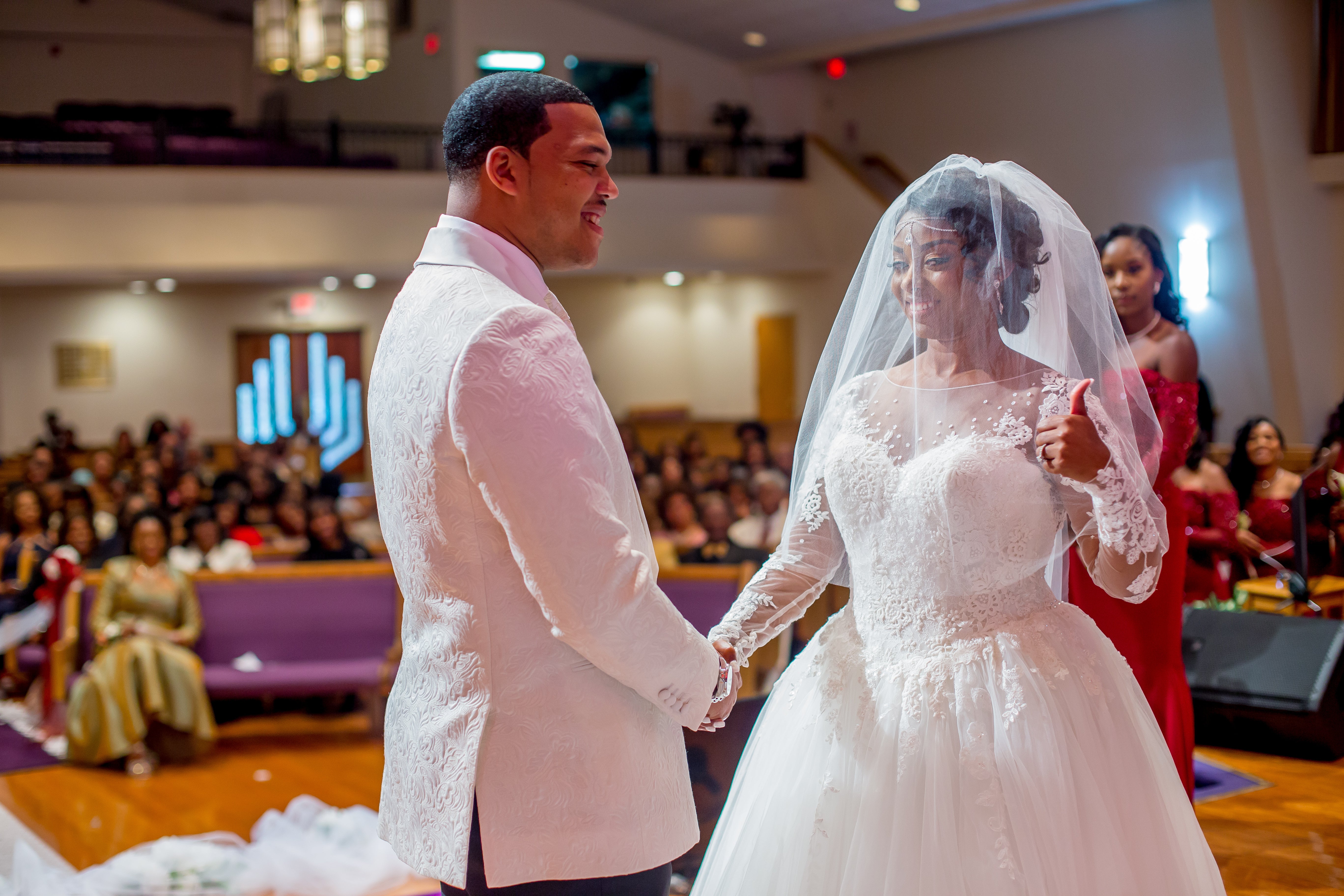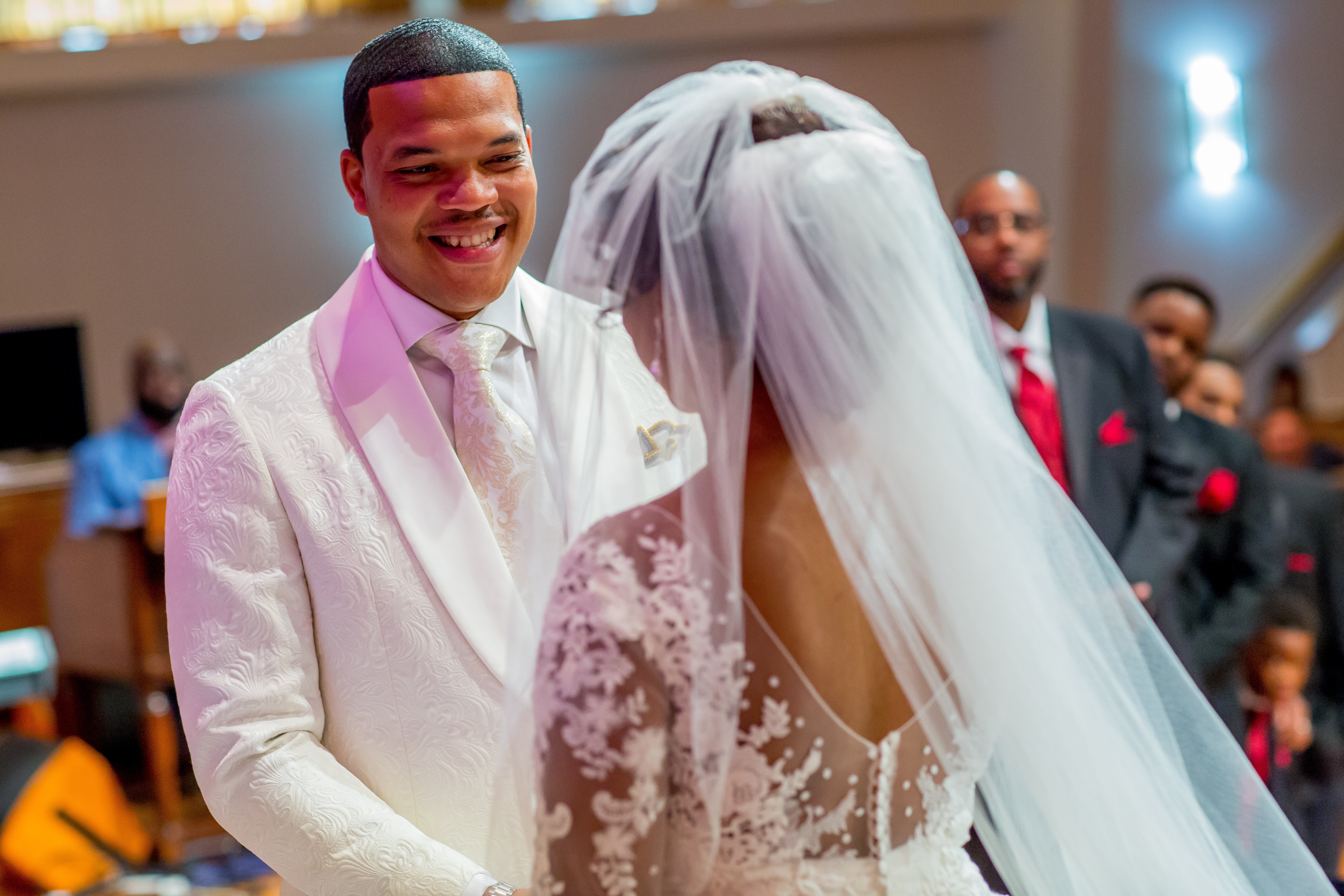 “We are both born and raised Pentecostal, my father is a Bishop, and Justin is a Pastor so it was very important to us that we followed the structure of a religious ceremony,” said the bride. “We had a prayer. We had the Old and New Testament Scripture read and we also took communion. We wanted to be sure that the ceremony was sacred and spirit filled.”