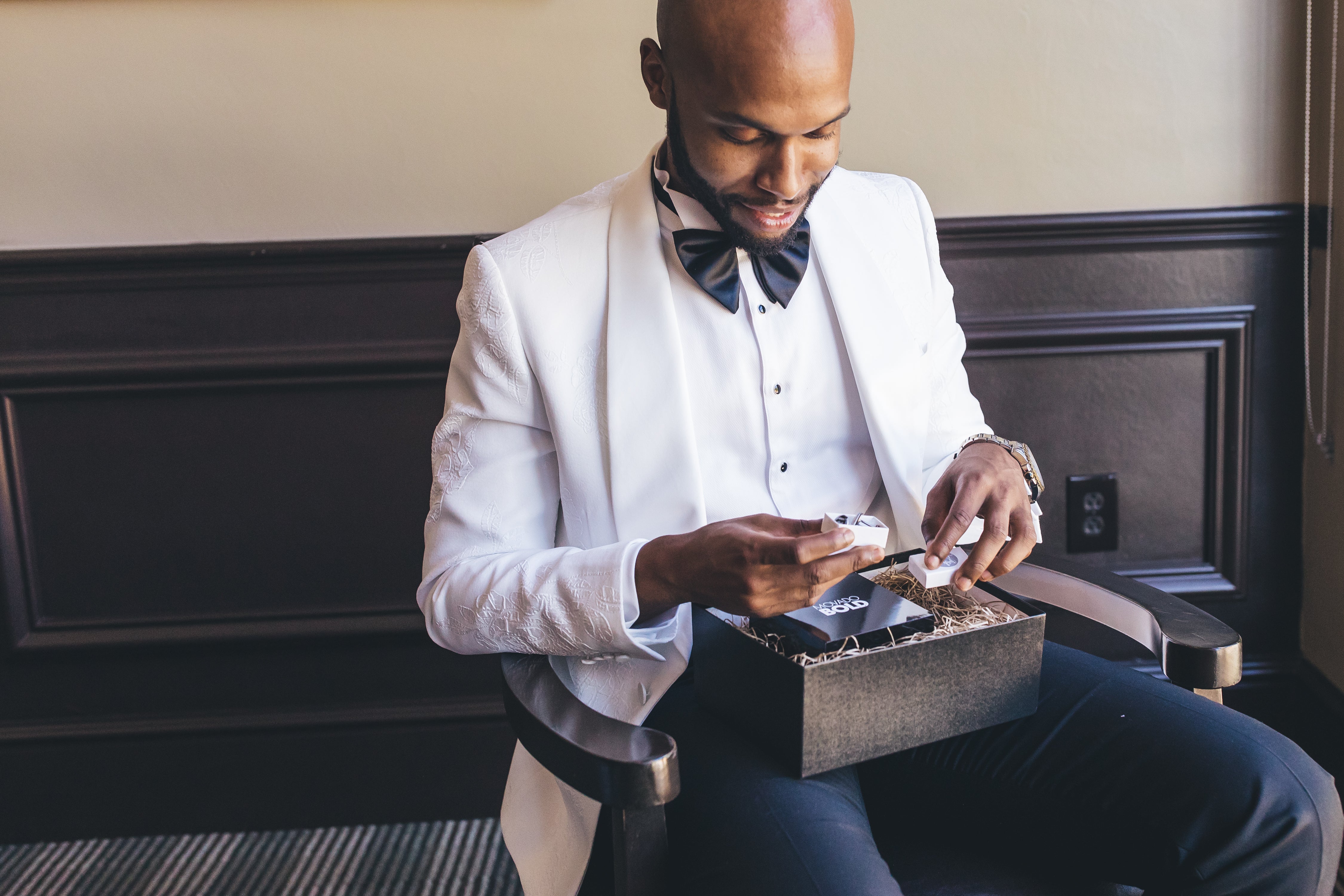 Kareem says picking out bridal attire went a lot smoother for the guys. “A good friend of mine from college owns a mens’ suit store and he handled all of the guys tuxedos.”