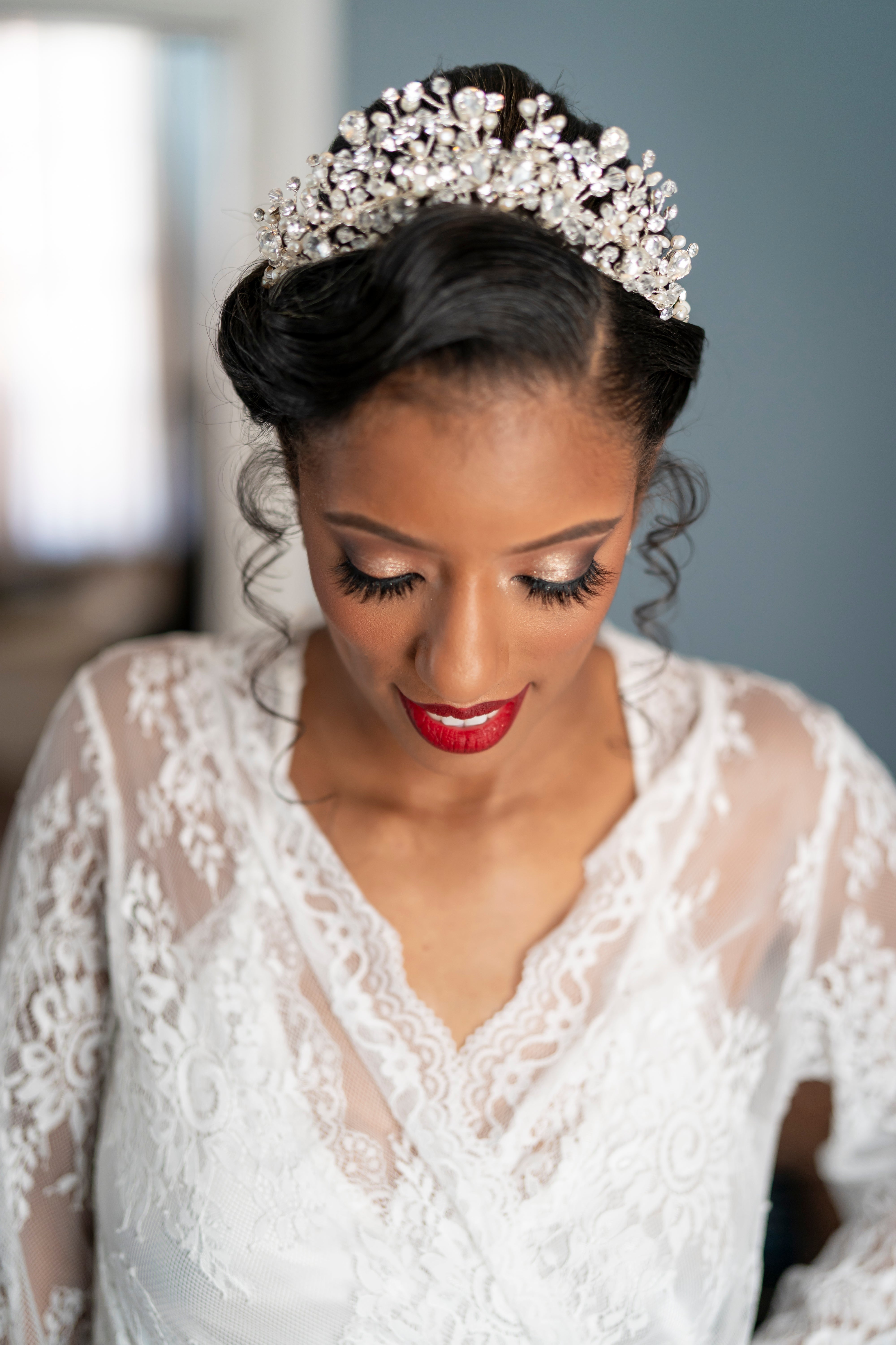 Rachel’s diamond tiara is a show stopper.