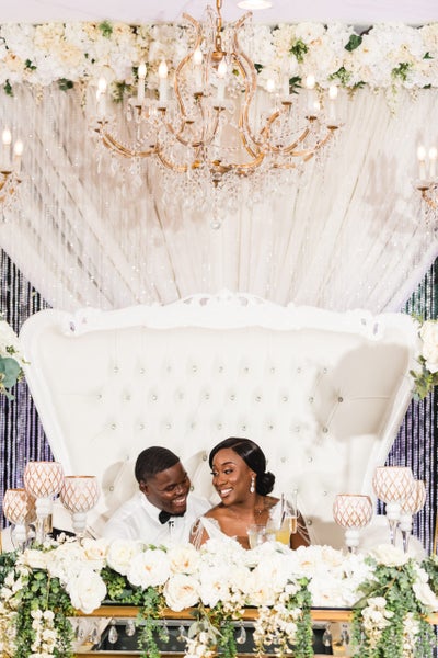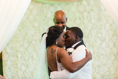 “Our best memory was the first touch,” Larissa says of the couple’s favorite moment from their day. “It was like we were one with each other during that time but we could not see each other’s faces. I was 110 percent certain that he was smiling from ear to ear because I sure was. He asked how I was feeling and if I was ready to be his wife. I said yes and led us in prayer. During that moment, I prayed for strength, guidance and unconditional love for me and my husband-to-be. At that moment, nothing else in the world mattered to us. It was all about us and the journey we were getting ready to embark on together. It made walking down the aisle that much more special.”
