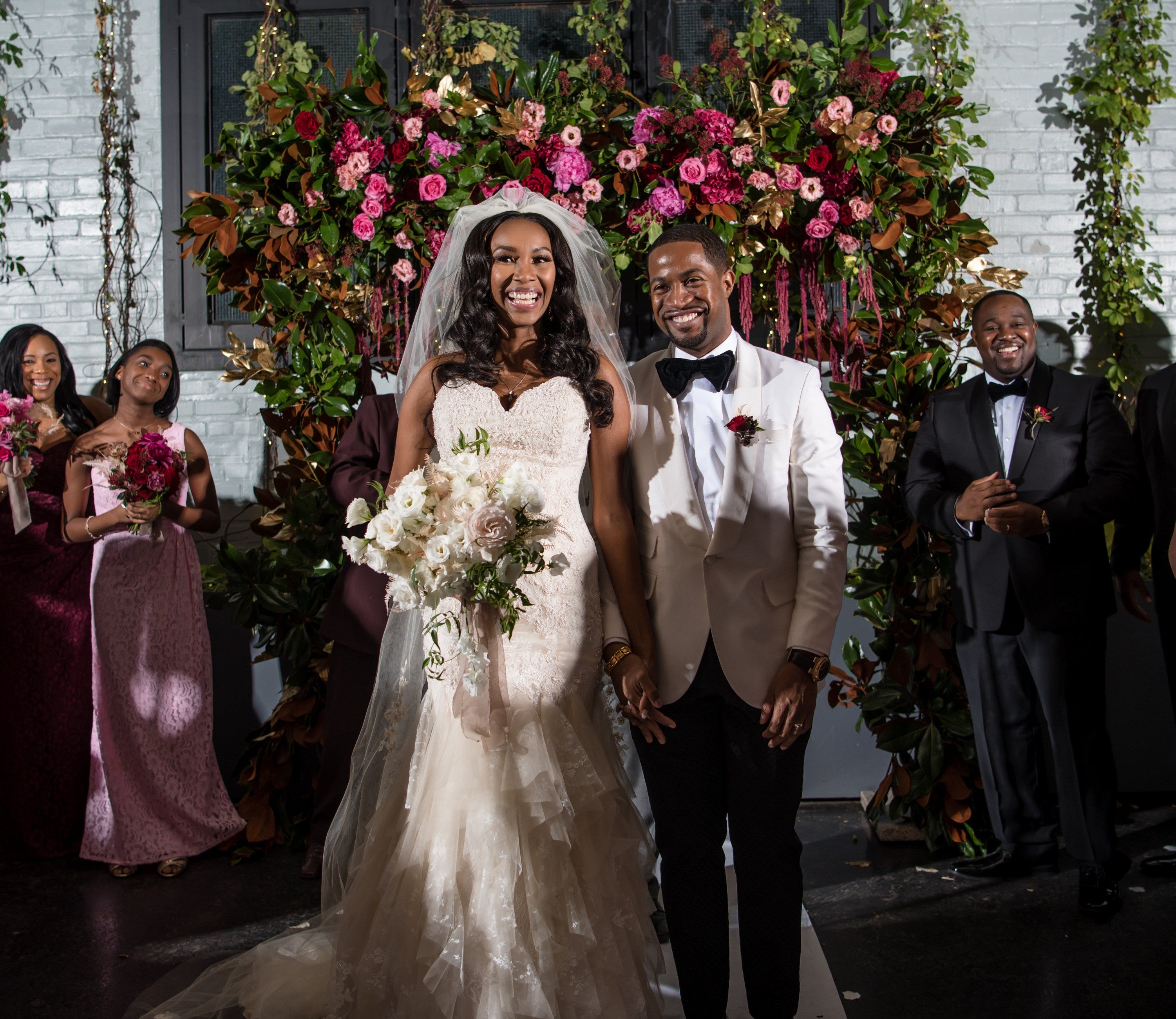 “The thing I love most about Omari is that he’s caring and genuine,” said the bride. “He treats his friends as if they were his own family.”