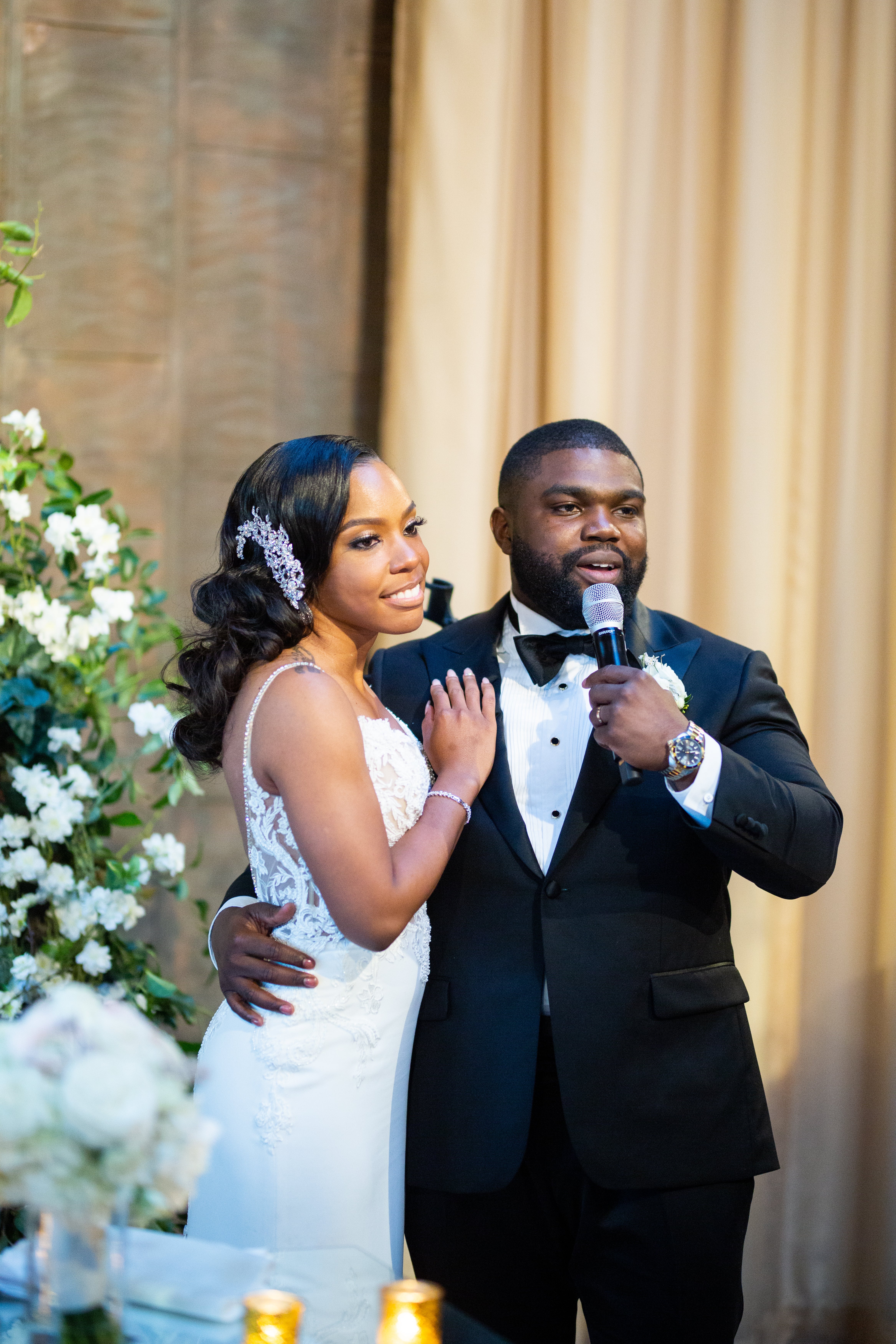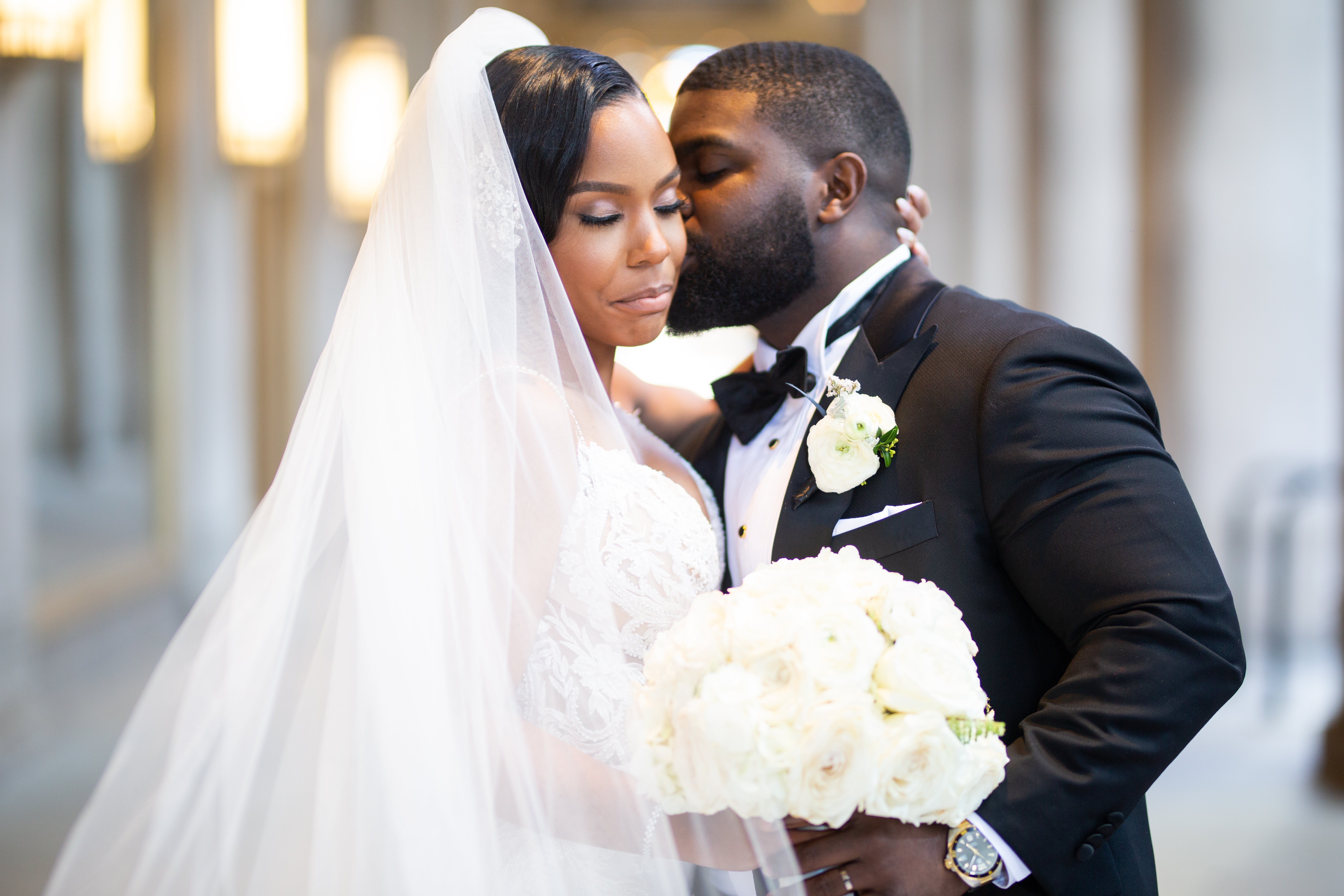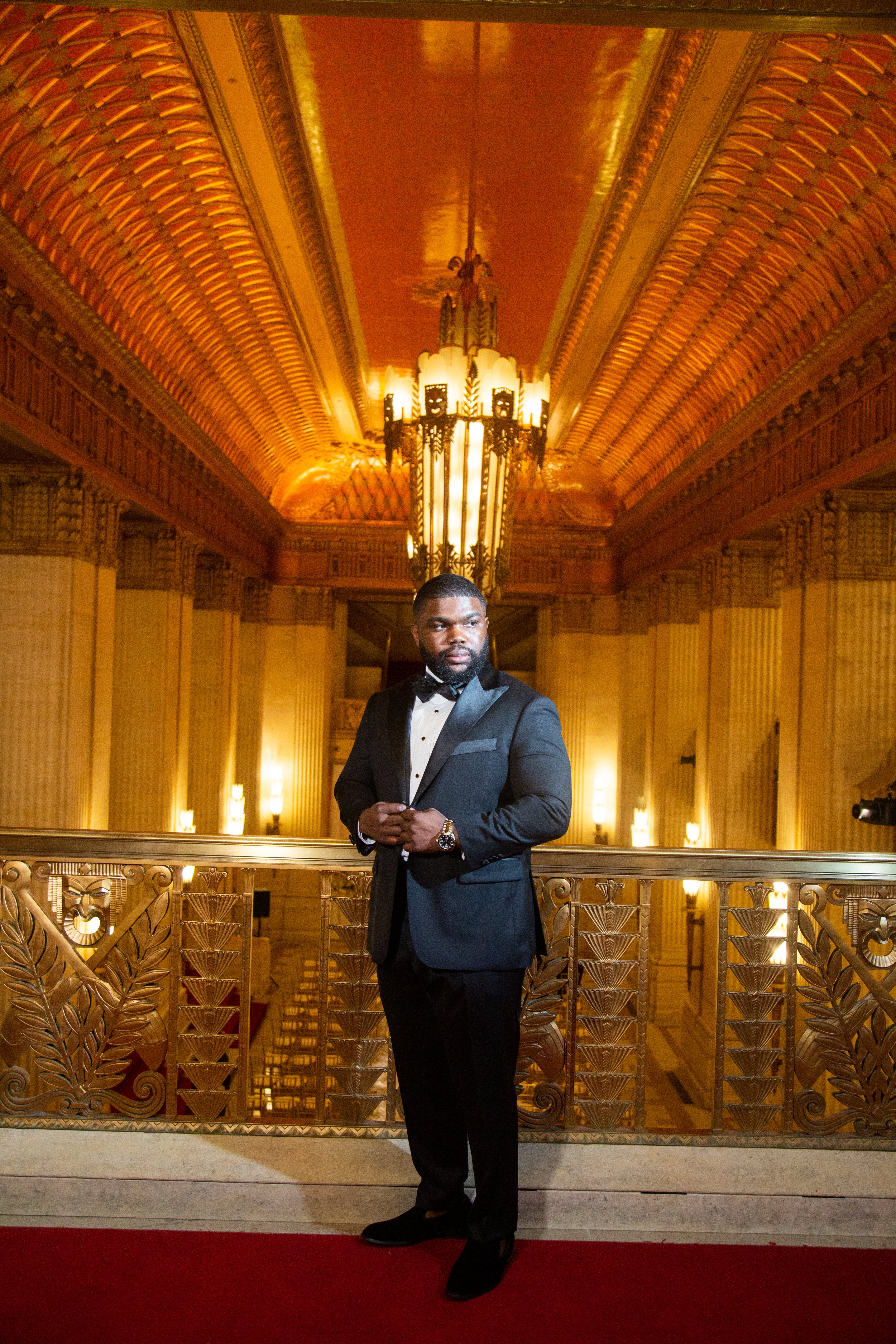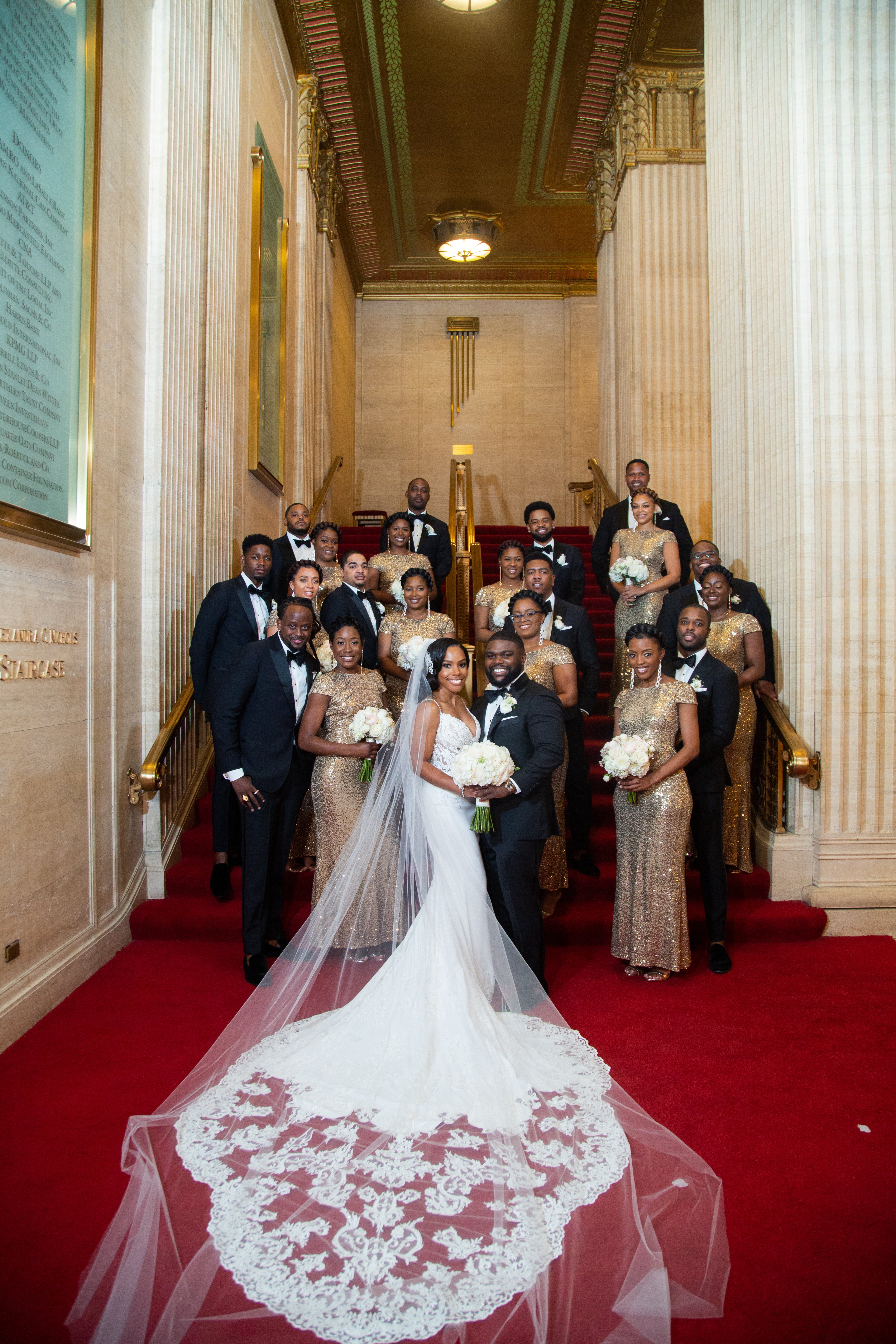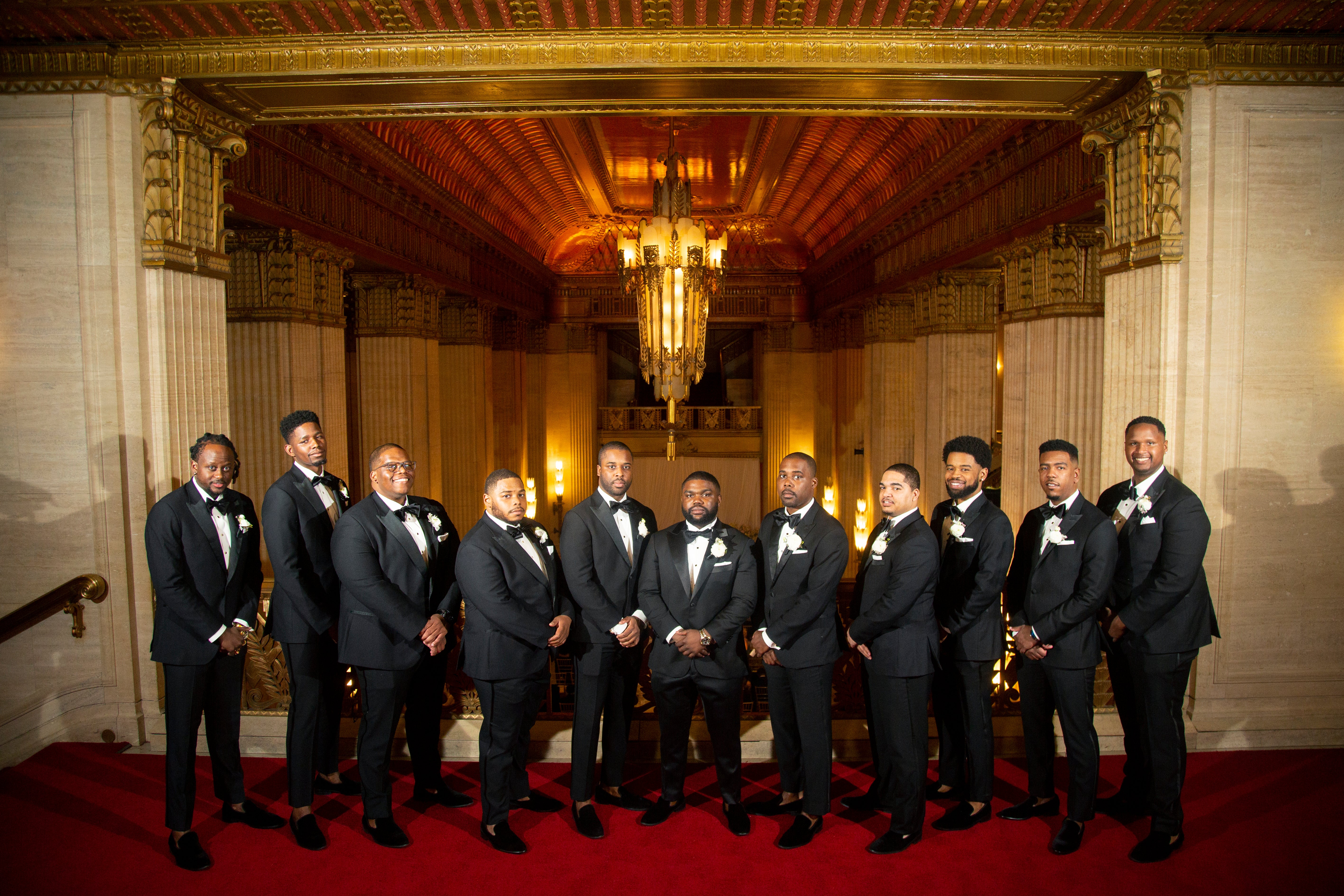 Their wedding, held at an opera theater in Chicago, was just as grand. The color scheme of black and gold married perfectly with the classic red carpets and gold fixtures of the venue. Thanks to La Toya Keys of Elle Kay Events, the Lows’ wedding day went off without a hitch. Tiffany says, “I am happy that I hired a planner and would absolutely recommend having one for all brides.”