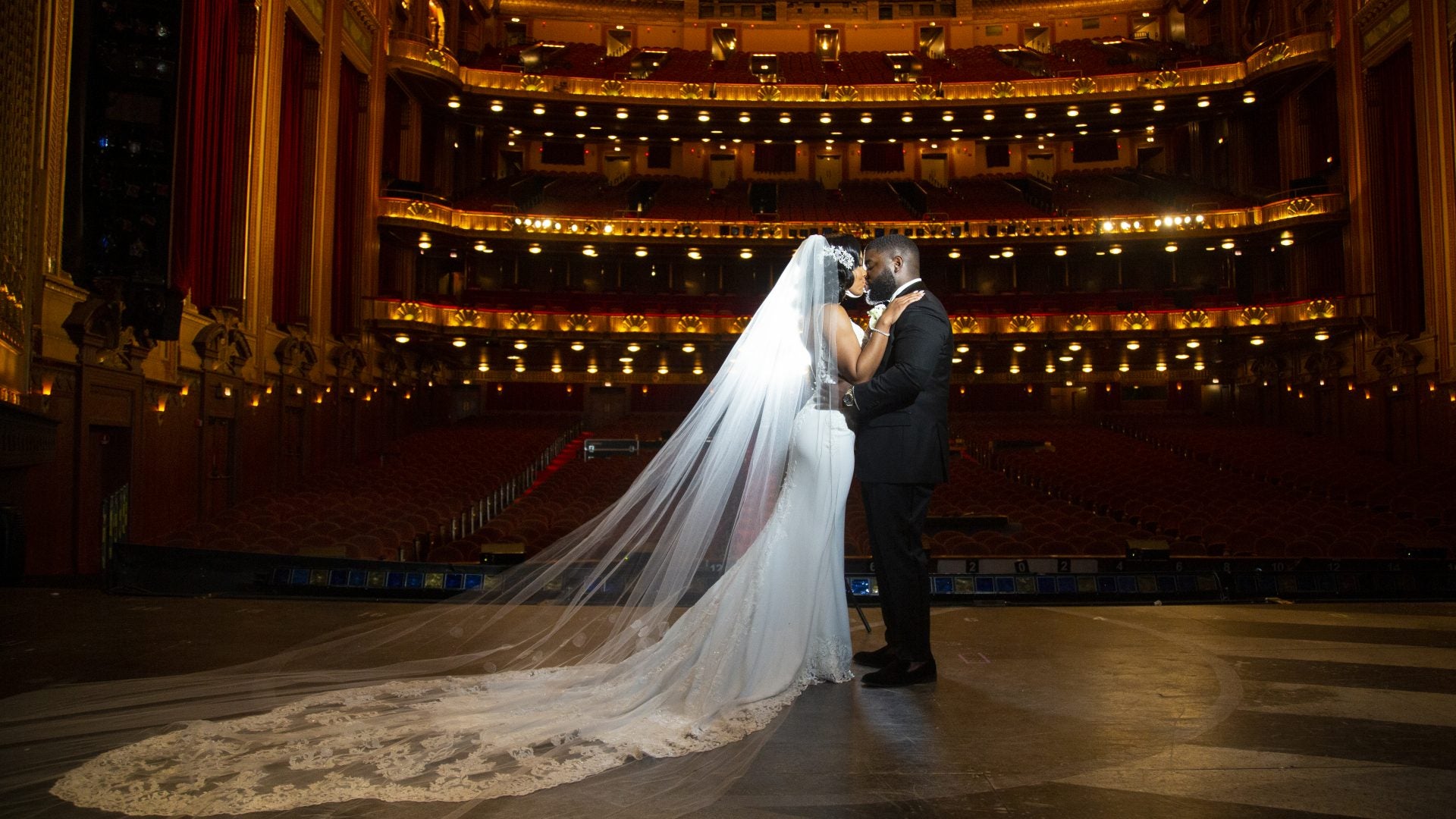 Scroll through the gallery for the most gorgeous moments from Tiffany and Terrence’s theater wedding in Chicago.