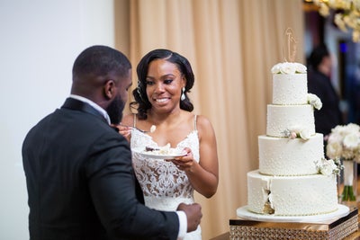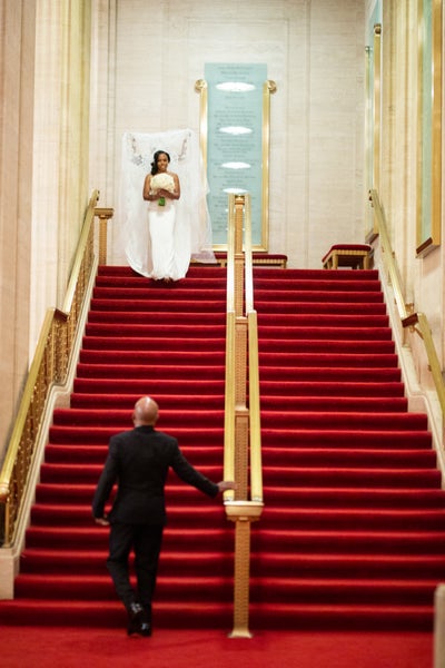 “My mother helped me get dressed and calmed my nerves ahead of the wedding,” Tiffany tells ESSENCE. “Terrence’s dad did the same for him in his dressing room with his groomsmen.”