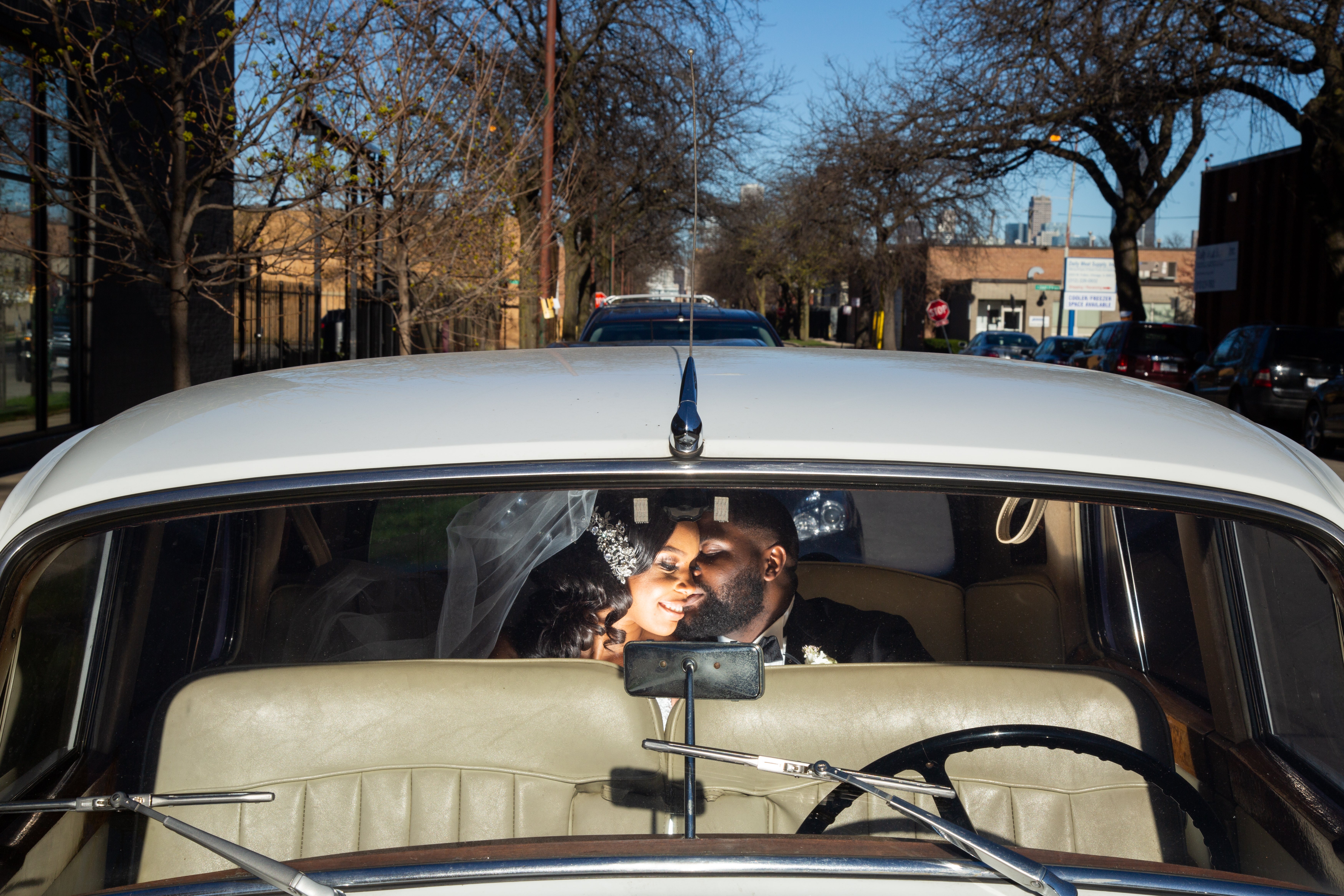 The Lows rode to their wedding reception venue in style.