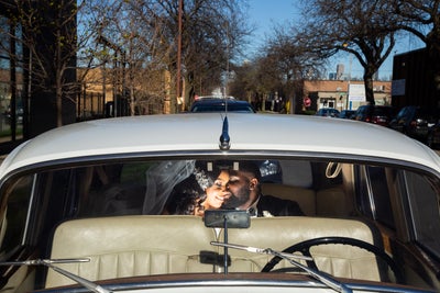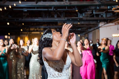 Terrence, a party promoter, invited Tiffany to an “event” that he said was for a local artist. It was actually the day he planned to ask for her hand in marriage. “When I arrived it was just him at the venue with a ton of pictures of us on the wall from over the years and a huge painting of us hanging in the gallery,” she says. “He then got on one knee and asked me to be his forever. How could I not say yes to that!?”