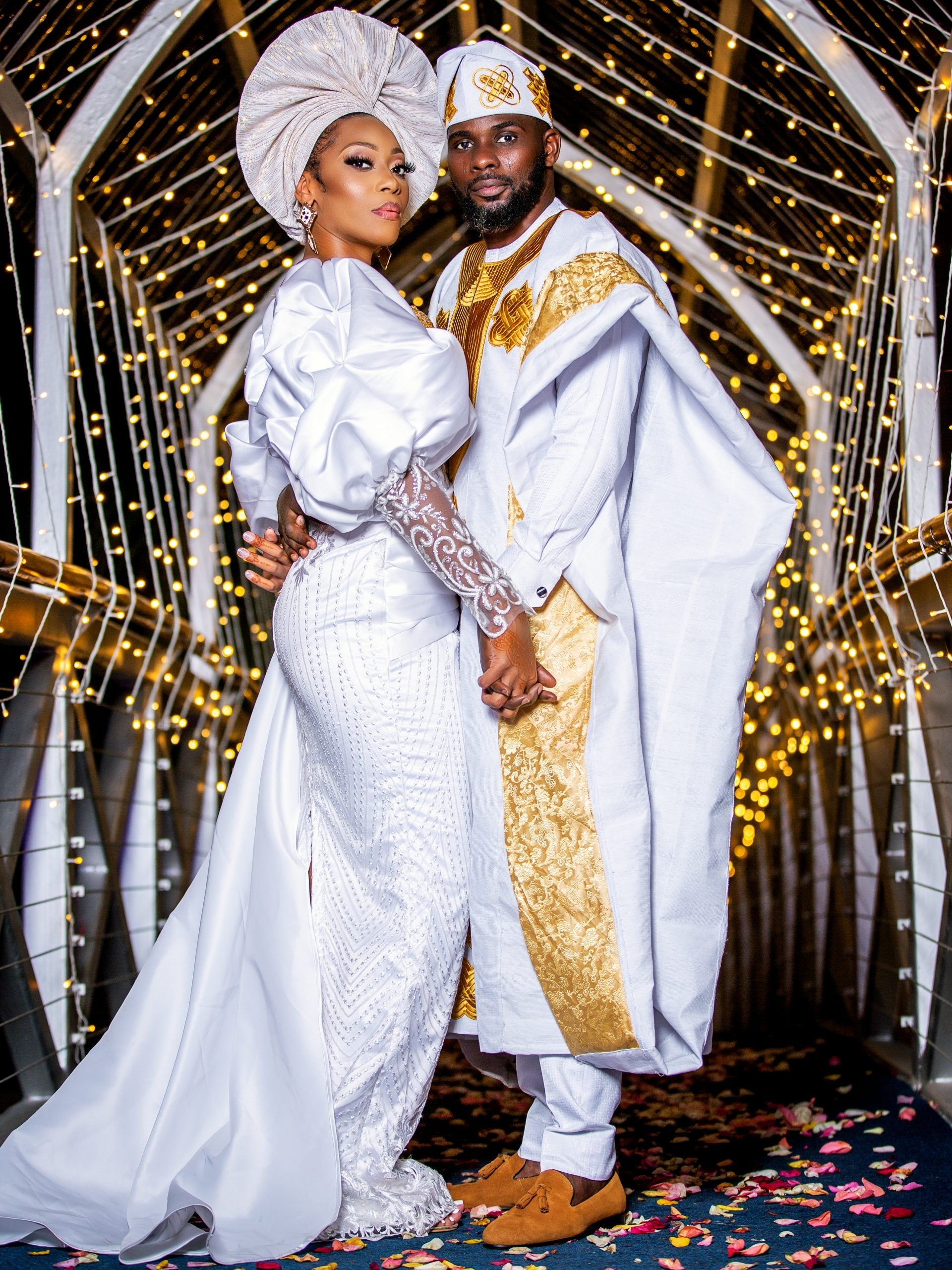 The extravagance for this couple’s big day came in the form of the regal attire they wore for their Nigerian traditional wedding, which was also a destination wedding in — hold onto your hats — Tanzania.