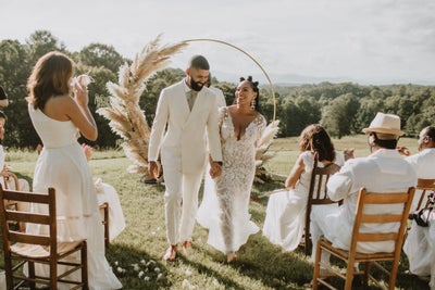 Rosco was walked down the aisle by her father, who sang to her on their walk. “I decided to go barefoot because I’m not a fan of heels and didn’t want to be uncomfortable on my wedding day,” she says, “and also, I felt that this was the perfect time to be one with the earth and have a moment of grounding as I married my love.”