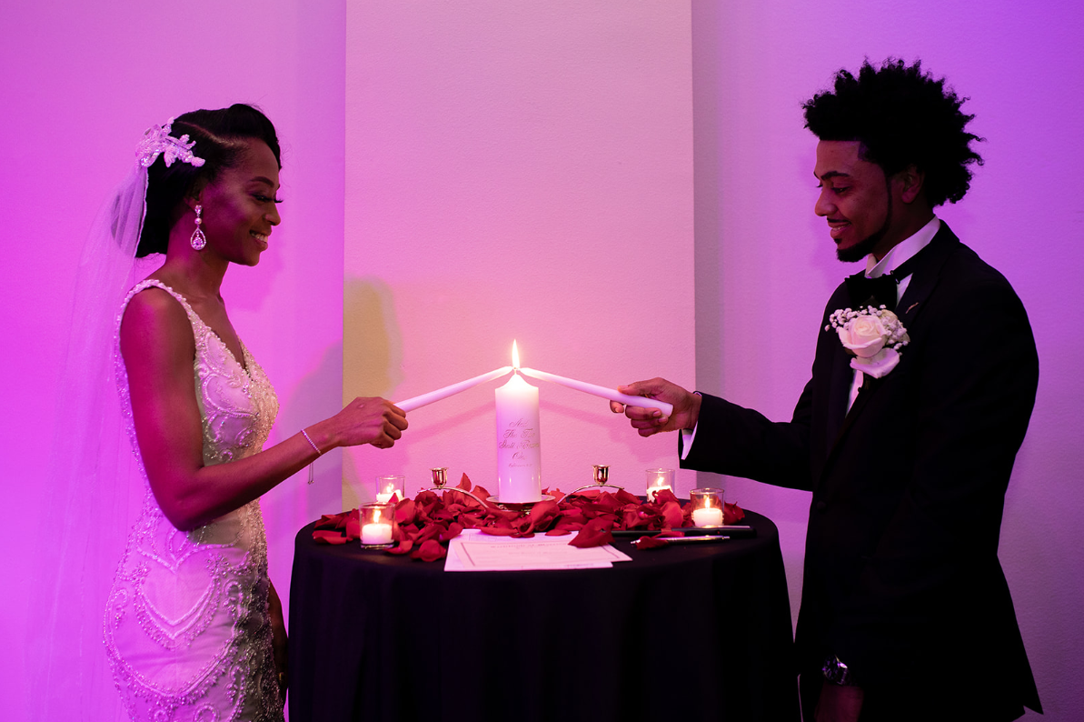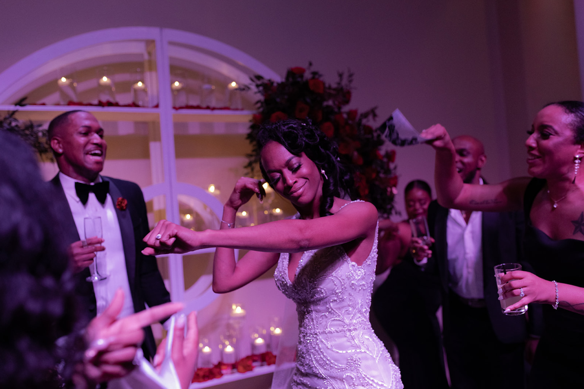 True to their Black excellence theme, Pierre and Ronald hired a team of Black wedding vendors to handle food, decor and everything in between. Their 150 guests partied like rockstars (complete with an entire band) and the newlyweds looked amazing every moment of the day.