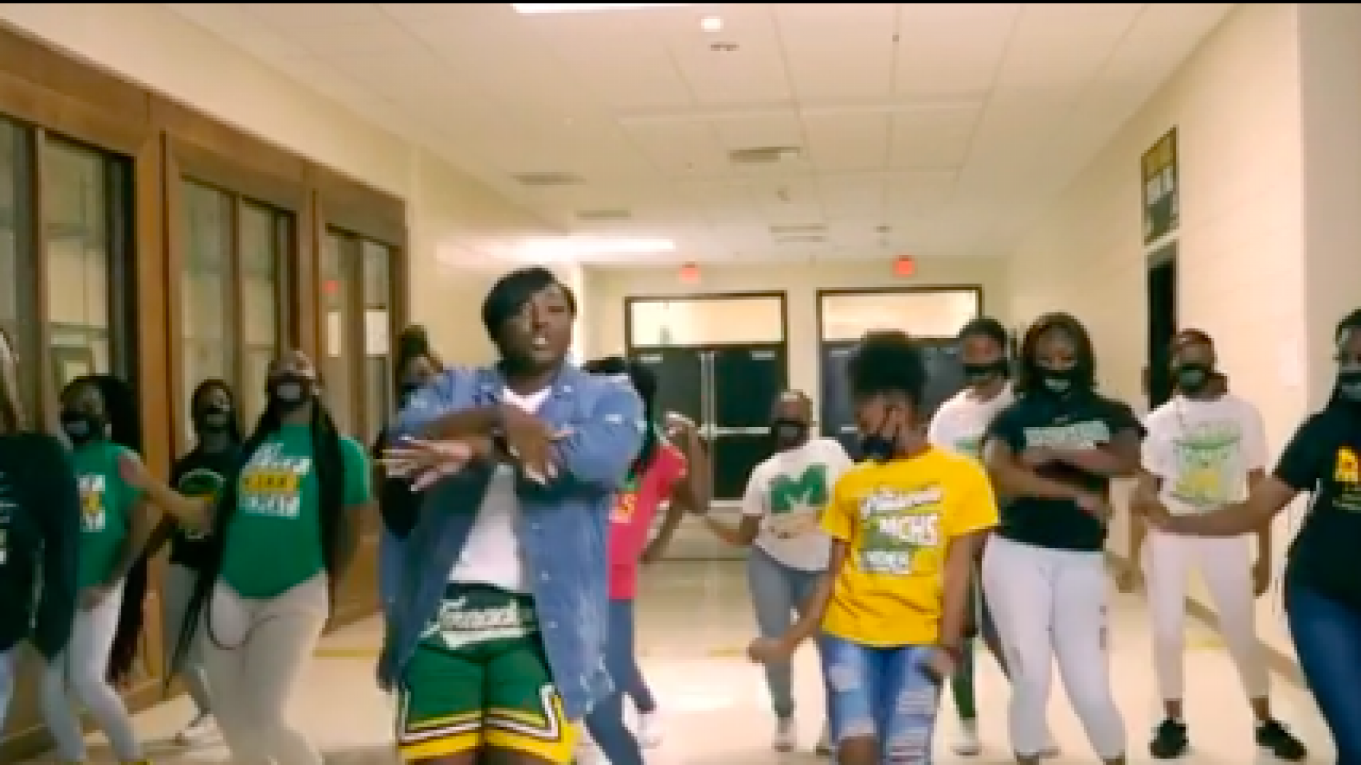 The teachers, who are also cheerleading coaches, also involved some of the students, featuring their cheerleaders (who were all wearing masks) as backup dancers for the catchy videos.