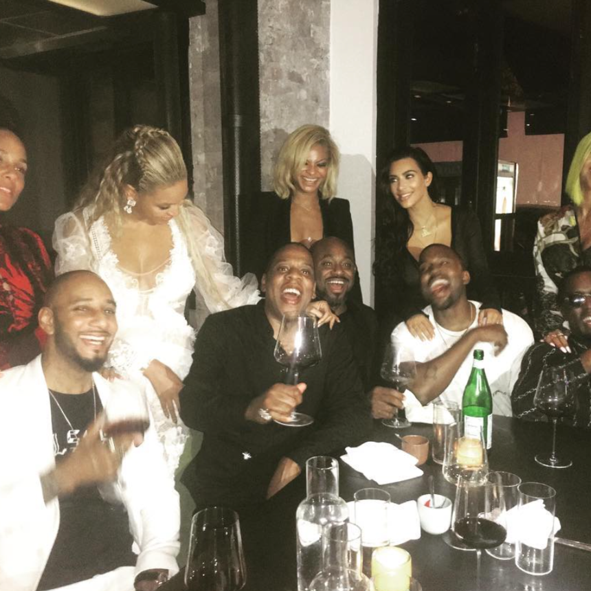 During the post VMA festivities, Beyoncé and Jay Z, Alicia Keys and hubby Swizz Beatz, Kanye West and his wife Kim Kardashian-West, Diddy and his boo Cassie along with record exec Steve Stoute and his lady love, toasted the night away in complete style.