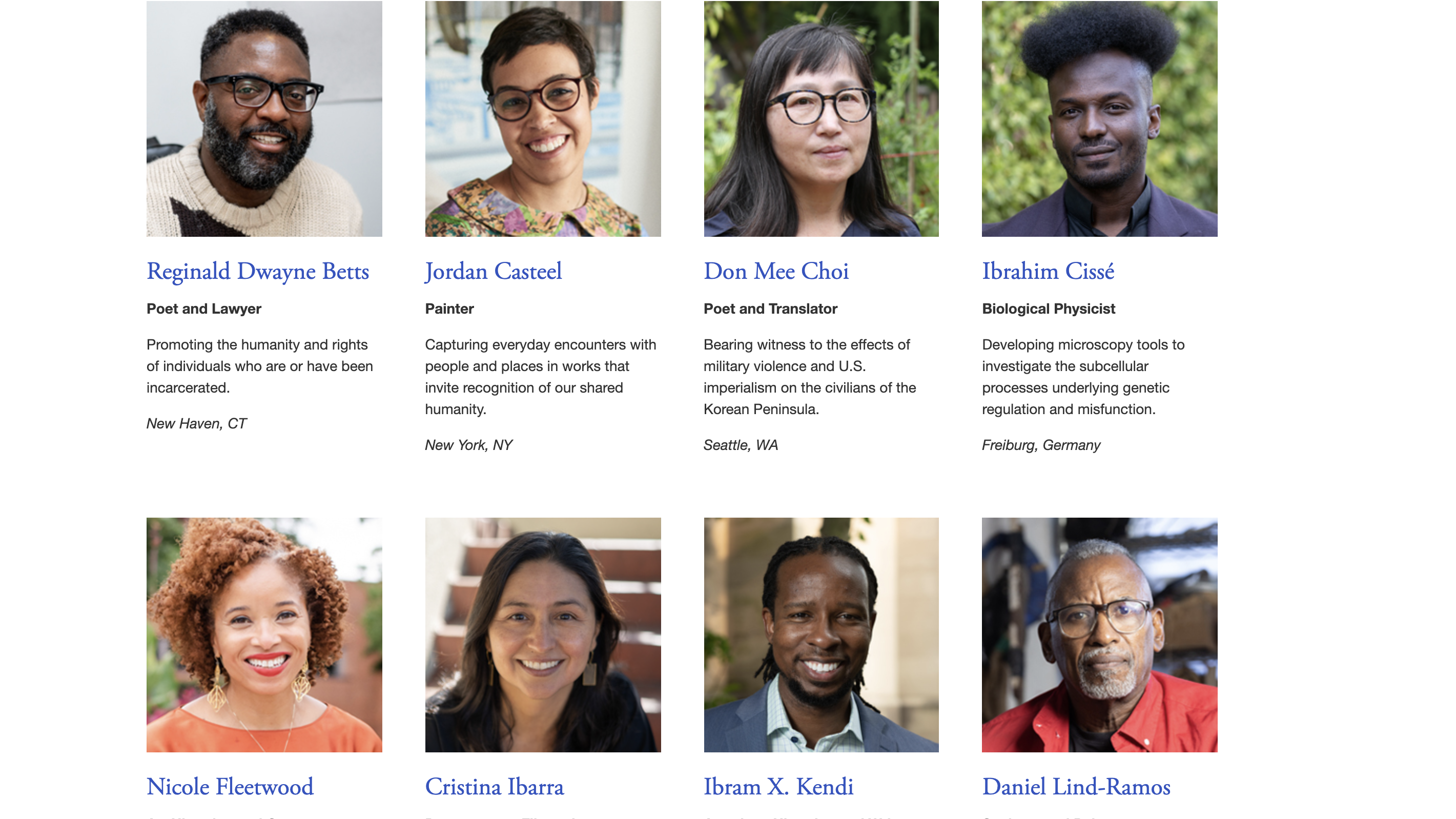 Additional Black recipients include Jordan Casteel, Nicole Fleetwood, Daniel Lind-Ramos, Ibrahim Cissé, Reginald Dwayne Betts, Desmond Meade, Safiya Noble, and Jawole Willa Jo Zolla.