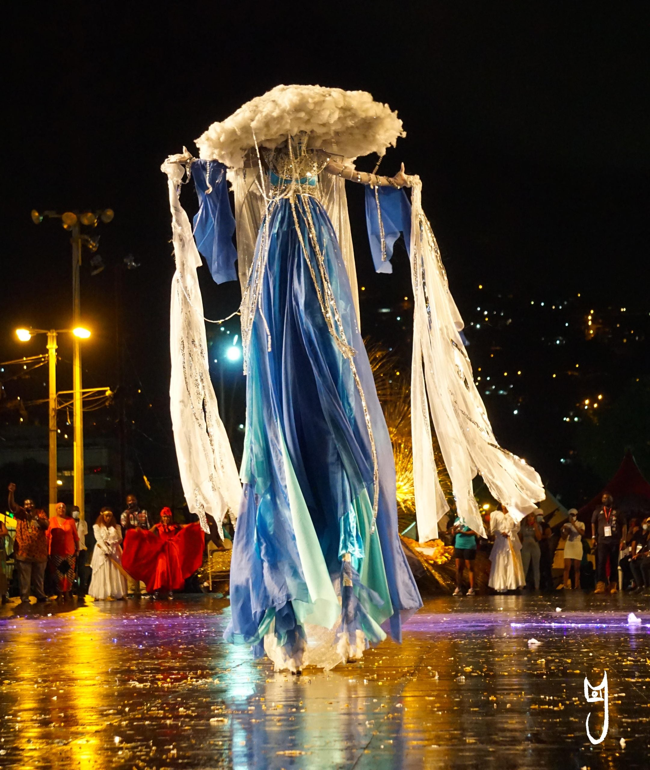 The moko jumbie or stilt walker is a traditional masquerade character often seen throughout the Caribbean during carnival season and beyond. The creativity in their elaborate and colorful costumes, coupled with unique acrobatic skill, is one of the most beautiful sights to behold during carnival, from parties to the parade of bands.
