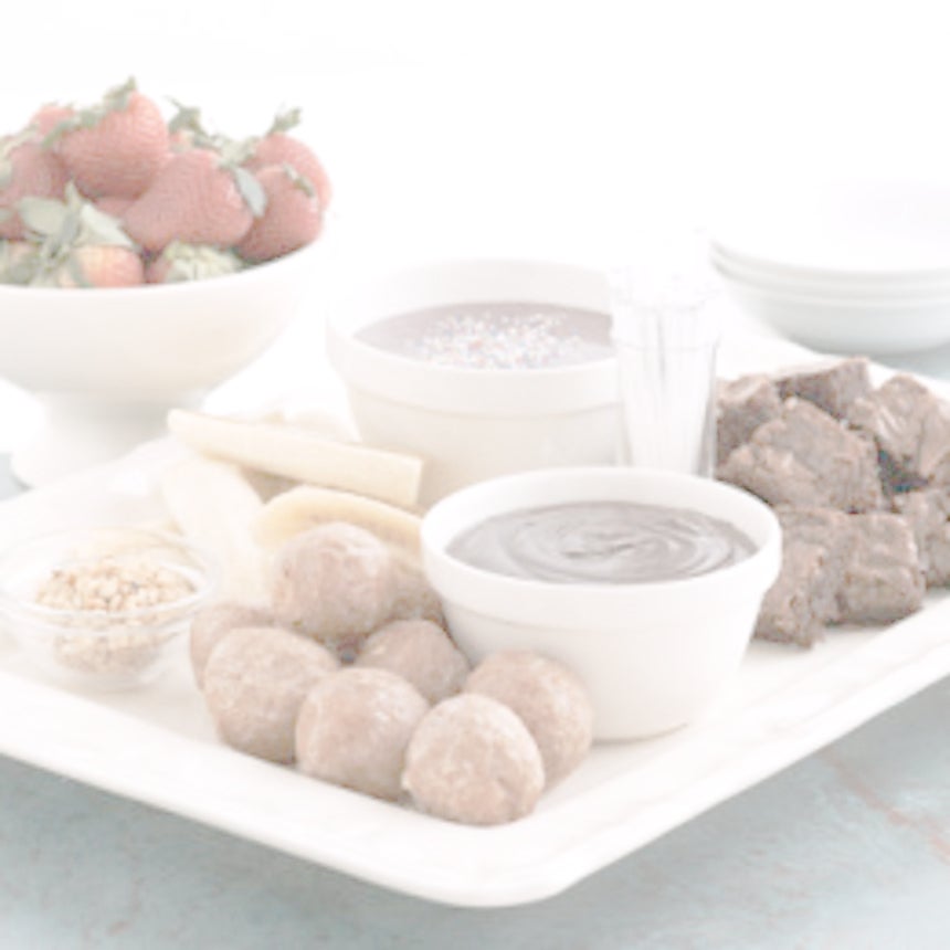 Who doesn’t love a little chocolate? This Sandra Lee recipe take less than a hour to make and serves 12 people. Have fun! Chocolate Fondue Bar Start to Finish 25 minutes Makes 12 servingsIngredients: For Chocolate-Caramel Fondue: 34 cup whipping cream 3 tablespoons cognac 1 bag (12-ounce) semisweet chocolate chips 12 cup butterscotch caramel sauce For White Chocolate-Berry Fondue: 34 cup whipping cream 3 bars (4 ounces each) white chocolate baking bar, Cut into small pieces 23 cup blackberry spreadable fruit 14 cup amaretto, Disaronno For Fondue Bar Dippers: 1 container (14-ounce) brownie bites 1 container (14-ounce) doughnut holes Assorted fresh fruit, such as whole strawberries and banana chunks Nut topping Rainbow sprinkles, Betty Crocker For full directions for this Chocolate Fondue, click here…