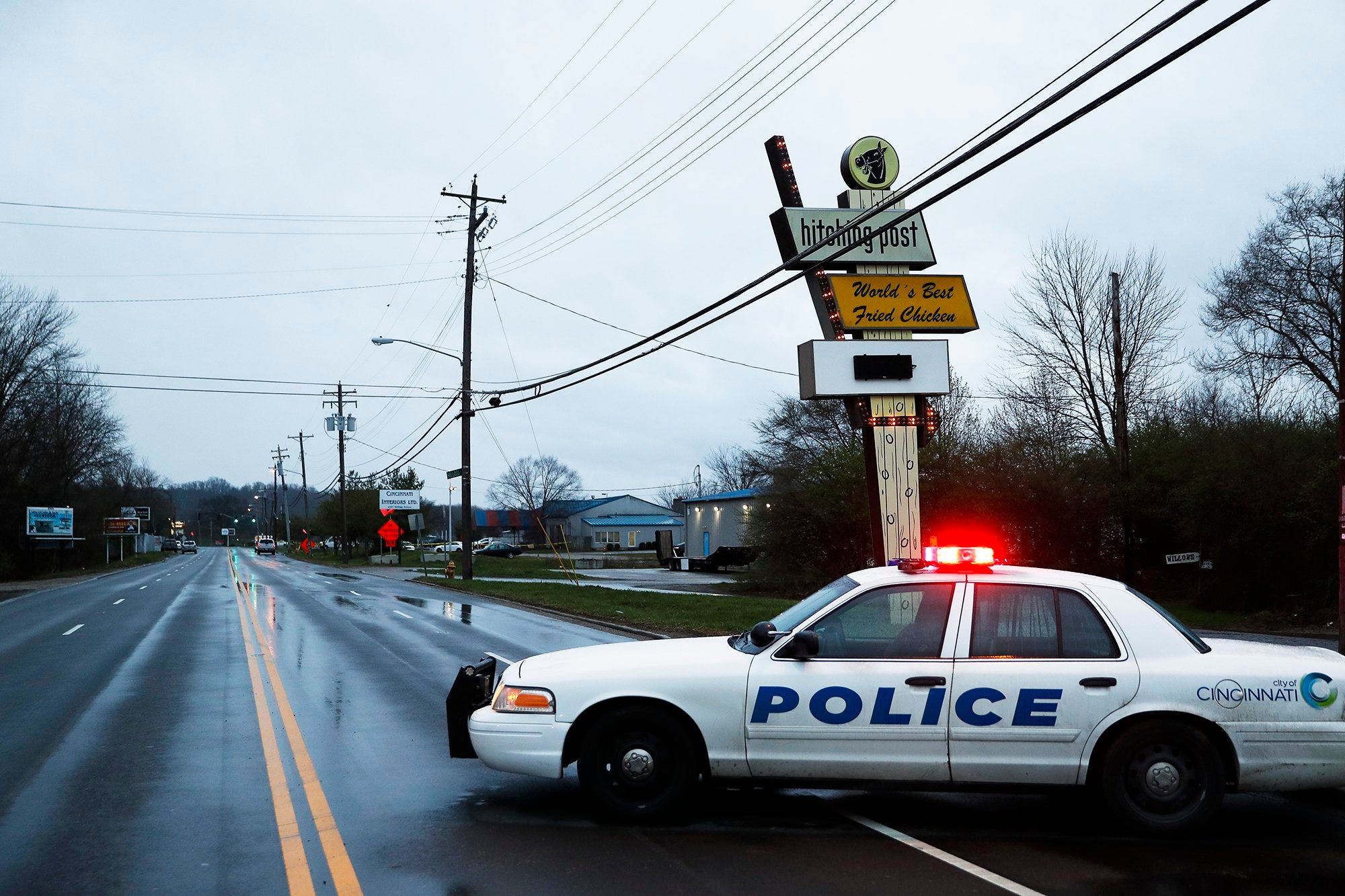 The area is mostly industrial but also home to several nightclubs with a smattering of homes. A regional airport is nearby along the Ohio River. The area is fairly desolate at night, with the exception of the nightlife scene and 24-hour gas stations. The road where the club sits was easily cordoned off by a single police cruiser and officer at either end.