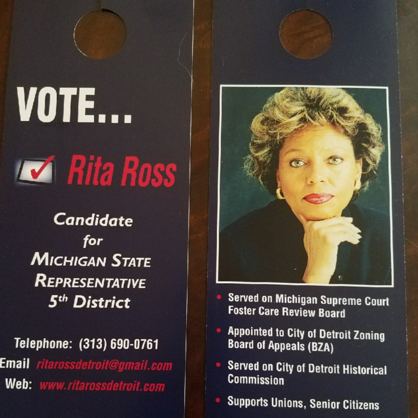 A longtime public servant, Rita Ross has served on the Michigan Supreme Court Foster Care Review Board for the last 16 years. A self-described community advocate, Rita Ross is running to be the state representative for Michigan’s 5th district, serving her hometown of Detroit.