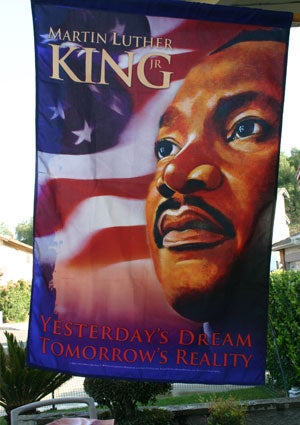MARIA ROSS: After being victims of a hate crime, my family turned to the inspiration of Dr. King to help get beyond our grief. We decided we needed to do something to address the bigotry and ignorance which continue to plague our communities today. We decided a visual display in the form of a flag could be a great symbol to help remind us of the selfless dedication Dr. King devoted to his life.