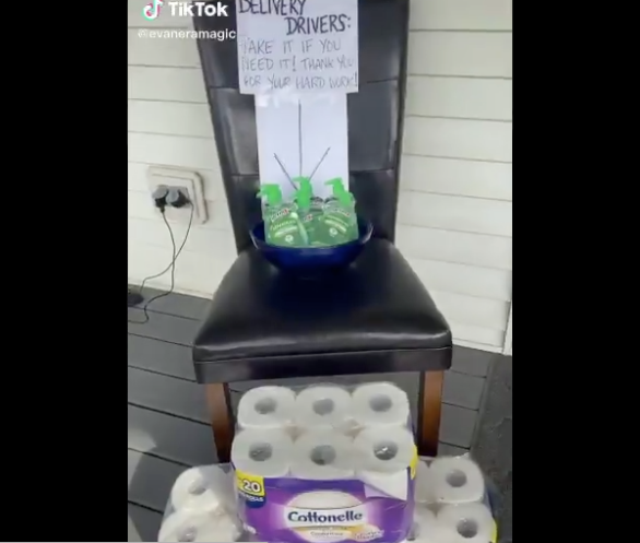 One YouTuber, Evan Era, set up a surprise for his delivery drivers, leaving his excess hand sanitizer and toilet paper outside his front door, free for them to take.