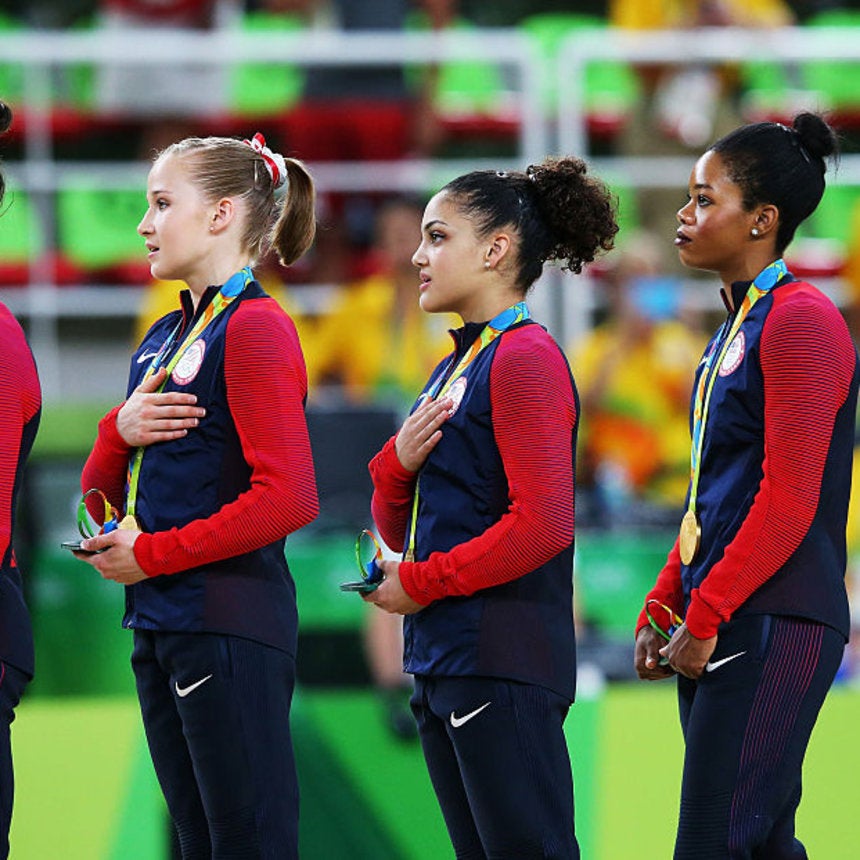 According to TMZ, Douglas stood at the podium alongside her teammates – Simone Biles, Aly Raisman, Laurie Hernandez and Madison Kocian – after taking home the gold in the team All-Around. The problem? Gabby was the only one standing without her heart covered during her country’s anthem, a practice that’s been executed practically since the beginning of time.