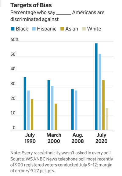 In an interview with the WSJ, pollster Brenda Lee noted that “Americans are concerned about issues of inequality, and George Floyd’s death helped contribute to that.” She also added, “We’ve moved the needle a great deal in terms of just clearly identifying that we, as Americans, have an issue with racism in this society.”