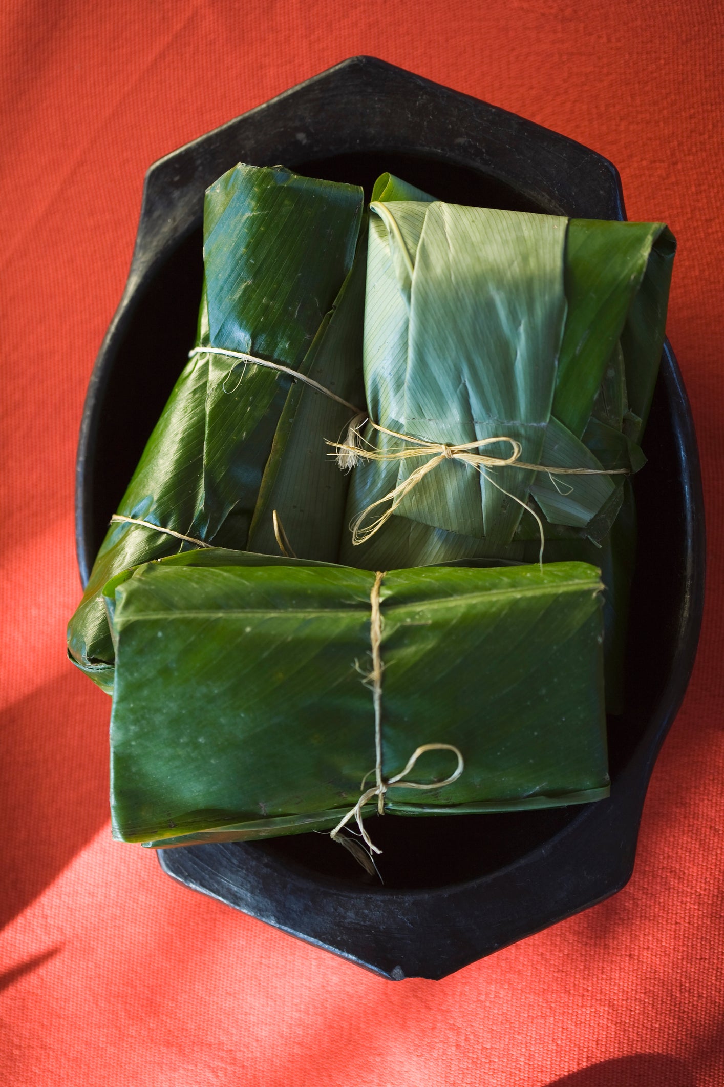 A Trinidadian staple, this sweet and savory dish is typically made with minced meat (although it can also be made with chicken or soy) cornmeal and raisins, wrapped up tight in a banana leaf and then steamed. There’s also an exclusively sweet version called Paime made with cornmeal, coconut and raisins.