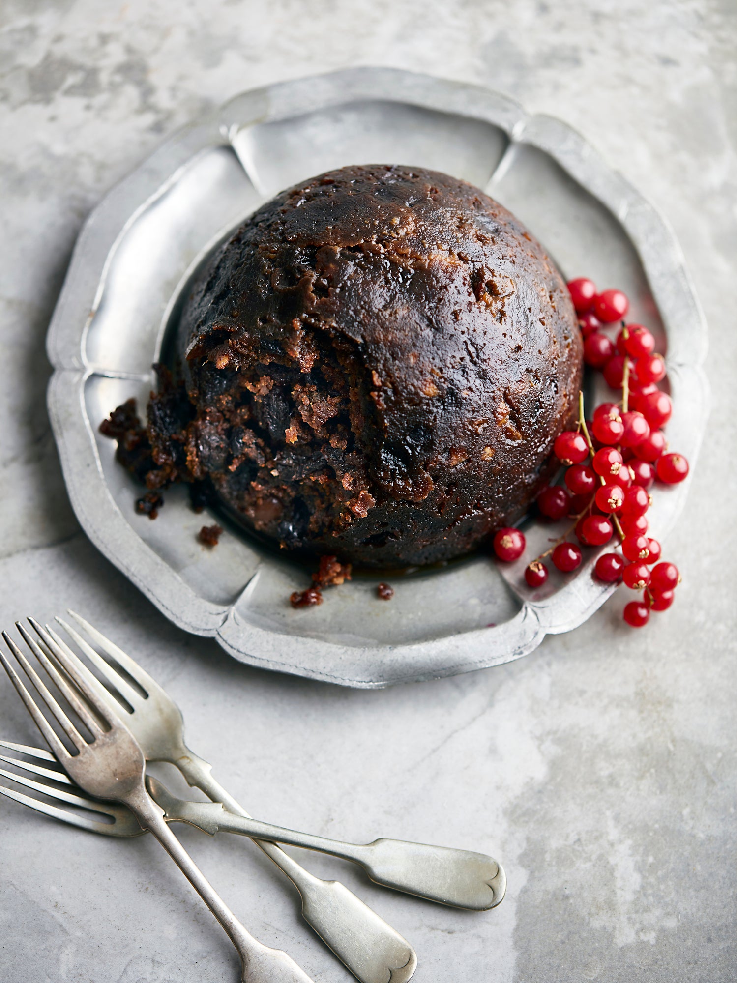 Derived from British plum pudding (pictured below), black cake can be found throughout the English-speaking Caribbean and owes its Black color to browning, a black syrup with a sweet caramel flavor made from burnt sugar.