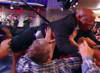 Lewis was the third guest of the night to crowd surf on Colbert’s show. Check out the memorable moment in the video clip below.
