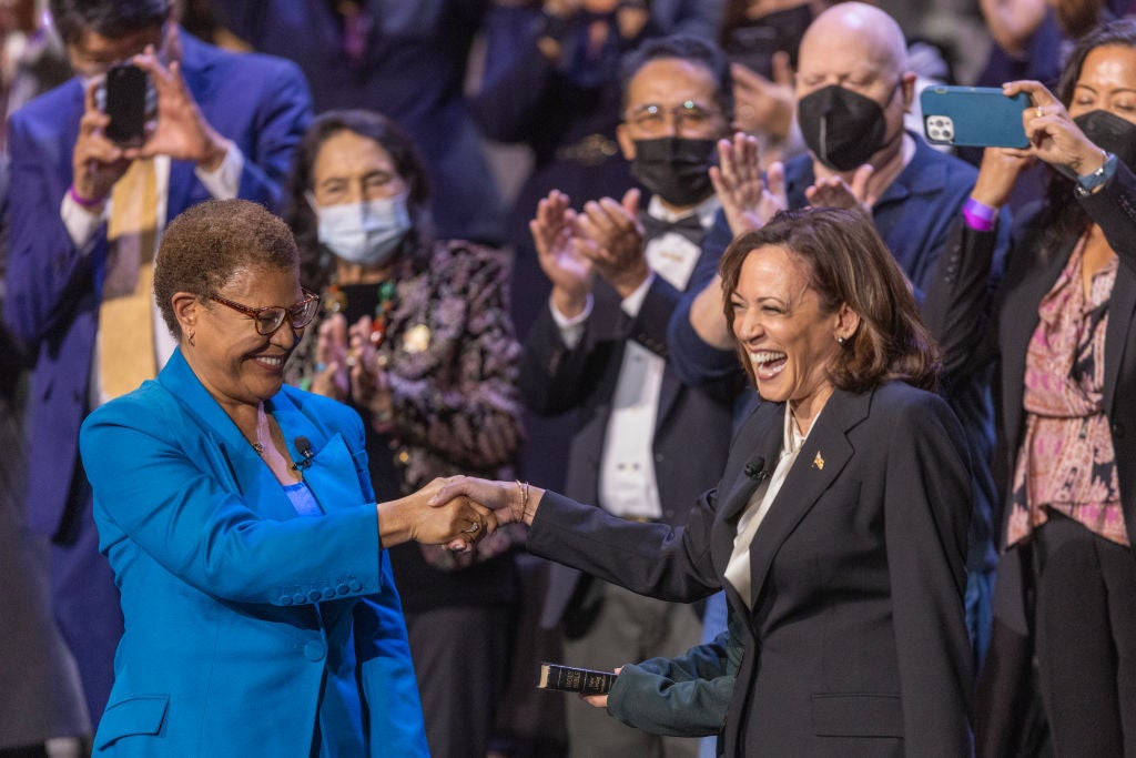 Days before the Sunday ceremony, it was announced that Vice President Kamala Harris would return to her home state of California to swear in the new mayor. After Bass recited the oath of office, Harris delightfully referred to her former Congressional colleague as “Madam Mayor” and the pair shook hands.