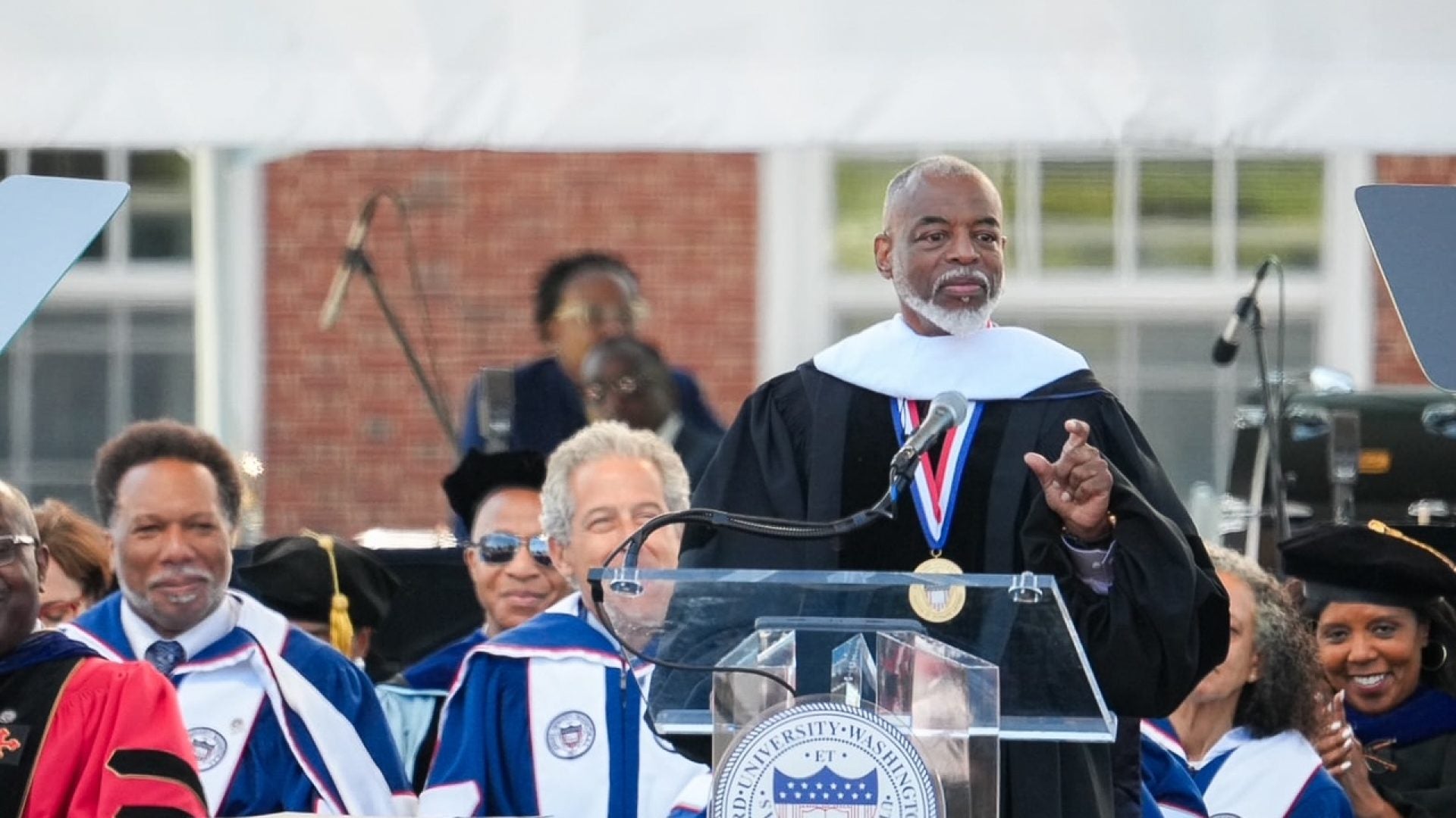 As Howard’s president, Ben Vinson III, introduced Burton, citing his iconic roles in “Roots,” “Star Trek: The Next Generation” and “Reading Rainbow,” the crowd erupted in applause.