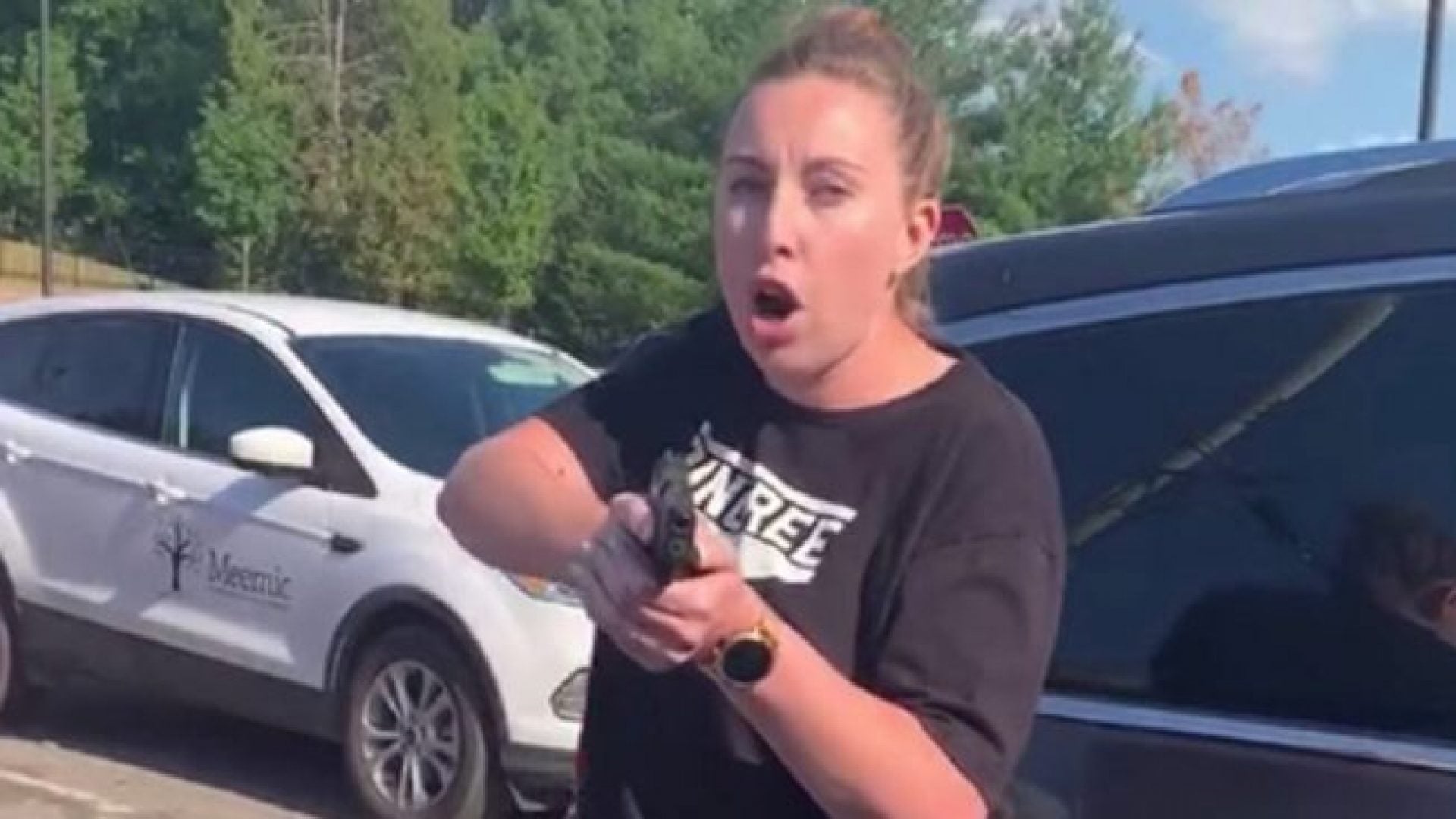 While pulling out of the restaurant parking lot, Mr. Wuestenberg nearly hits Hill with his car. Hill claims the couple was trying to run her over, and that’s when things take a concerning turn. Mrs. Wuestenberg gets out of the vehicle; points her gun at Hill; and warns her to “back the f–k up,” accusing Hill of purposely trying to jump behind the car. According to numerous outlets and the attorney for Hill and Green, the mother also had two additional children present who witnessed the encounter. Mr. and Mrs. Wuestenberg were taken into custody. Both parties are said to be reeling from the incident and currently avoiding media.