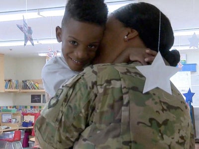 U.S Air Force Master Sgt. Shania Porter surprised her young sons at school after a seven month deployment.