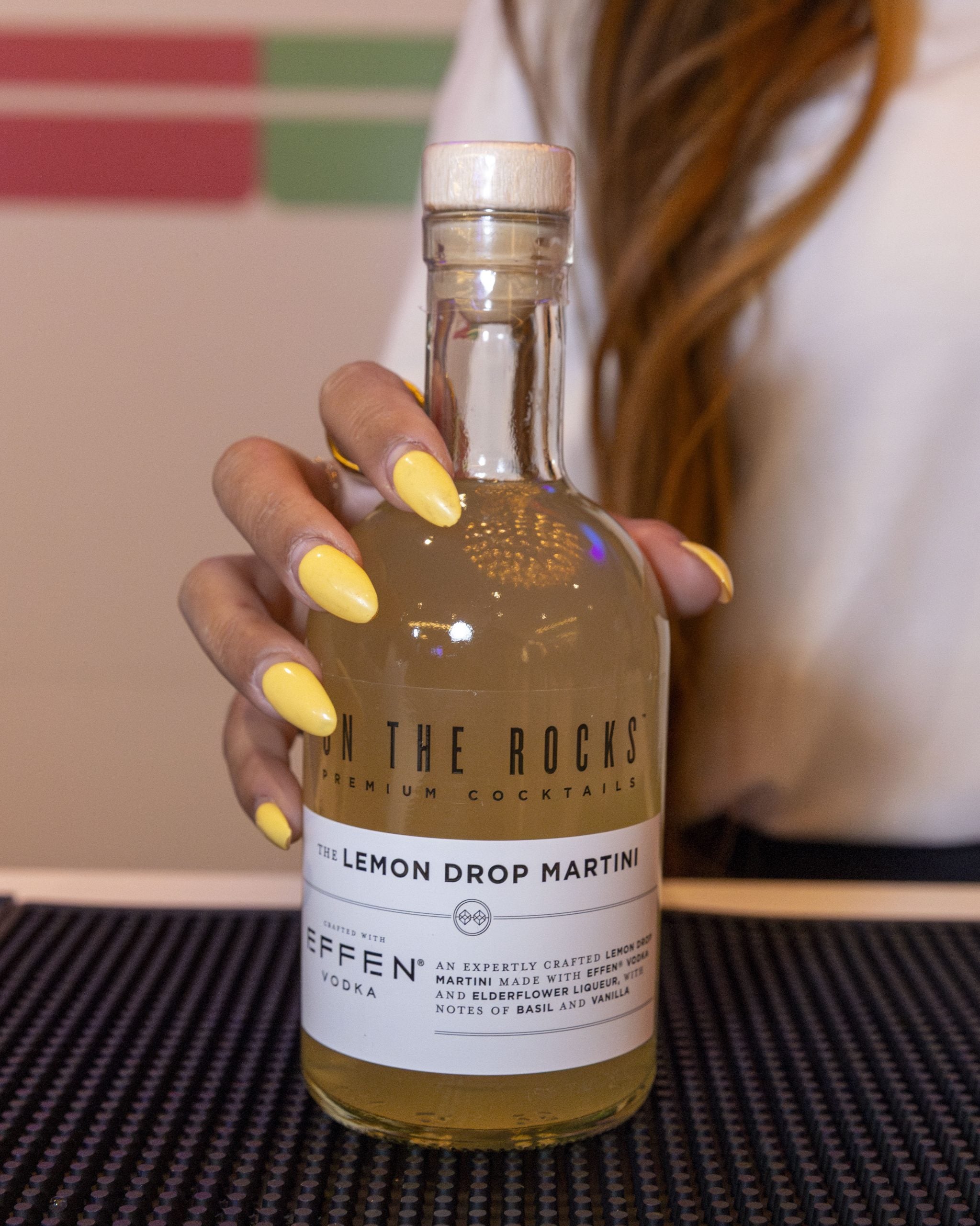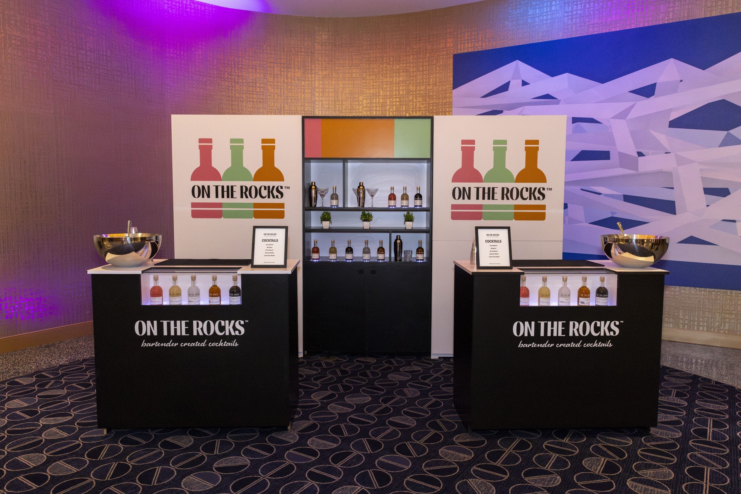 If you’re not familiar with On The Rocks, they make premium cocktails that come ready to drink. Think Cosmopolitans, Margaritas, Old Fashioneds – basically the drinks you’d order at a nice bar, but in bottles you can grab and go. The whole point is convenience without sacrificing quality, which makes sense for events like this where everything moves fast.